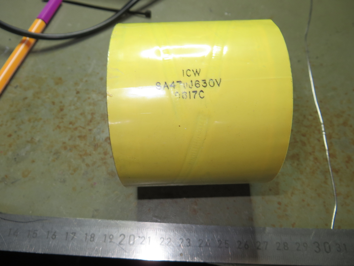 Hallo Leute ! Abzugeben sind 5 Stück Folienkondensator 47uF / 630V. Abmessungen D= 75mm, L=66mm. Die Teile sind gebraucht. Preis: VB 3€ pro Stück + 5€ versicherter Versand.