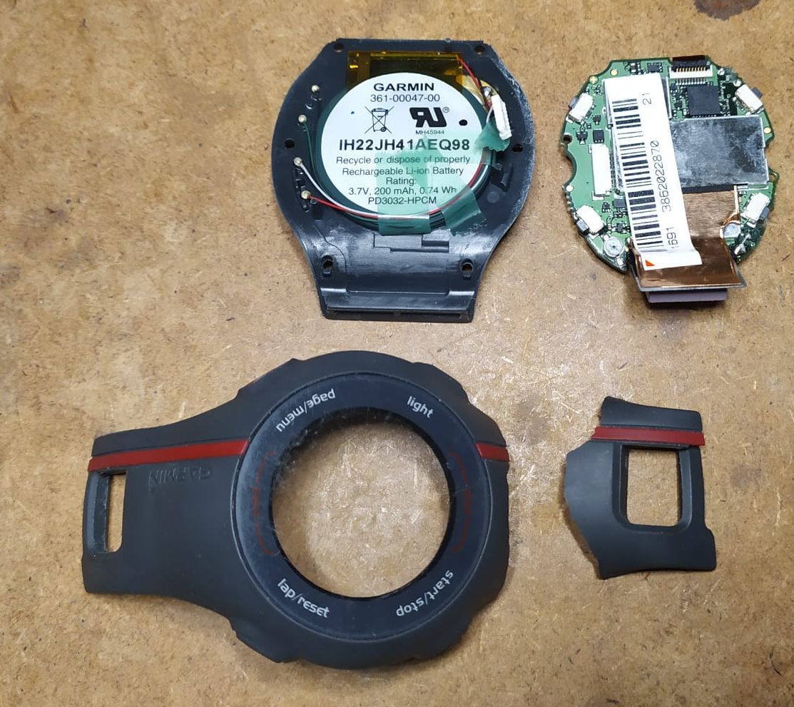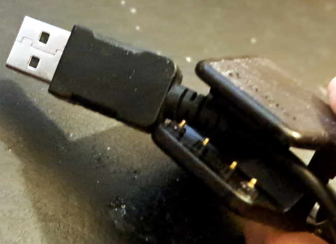 > die (separaten) Leitungen von den Lade-Kontakten bzw. vom Akku gehen > alle auf den kleinen Stecker, der zur Platine führt. So eine classic Puls-Uhr samt Brustgurt hab ich auch noch rumzuliegen, müsste ich mal in die Tonne kloppen. Die stammt noch aus den Zeiten als der Puls per Brustgurt gemessen wurde, heute misst man sowas per grüner LED am Handgelenk. Wenn ich mich recht erinnere, war der Ausmusterungsgrund hier: * keine Verbindung zum Brustgurt resp. unplausible Daten und/oder * Feuchtigkeit in der Anzeige und/oder * verschlissenes Armband Da der Link zur Anleitung: https://static.garmin.com/pumac/Forerunner110_DEBenutzerhandbuch.pdf Anbei ein Foto vom Anschlusskabel, zur besseren Darstellung "beisst" die Klemme nicht auf die Uhr sondern auf das Kabel nahe Stecker. Eigentlich gehen da nur die 4 Leitungen vom USB (1.1?) rüber. Das USB-Kabel ist auch zum Auslesen der Daten nötig (kein BT). Das Ding sollte über 15 Jahre alt sein, als Unterstützungsgerät für Laufsport also mindestens moralisch verschlissen...