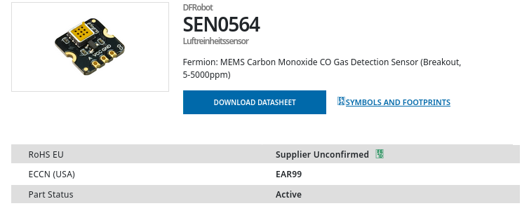 Bei der Suche nach einem Kohlenmonoxidsensor stieß ich auf dieses Modul: https://wiki.dfrobot.com/sku_sen0564_fermion_mems_co_sensor_breakout Mouser bietet es an, darf es aber anscheinend nicht in Deutschland verkaufen: "Aufgrund der gesetzlichen Vorschriften kann Mouser dieses Produkt nicht in Ihrem Land verkaufen." Weiß jemand, welche Vorschriften einer Lieferung entgegenstehen? Das Teil ist ja weder gefährlich noch zu bösen Taten zu missbrauchen. Der Sensor kommt aus China, gibt es da ein Ex- oder Importembargo? Halb so schlimm, das Teil kann man problemlos woanders kaufen.