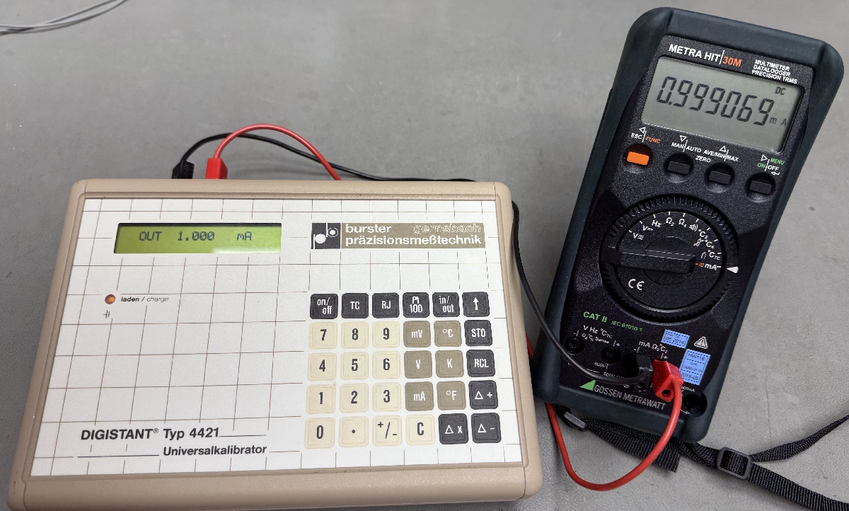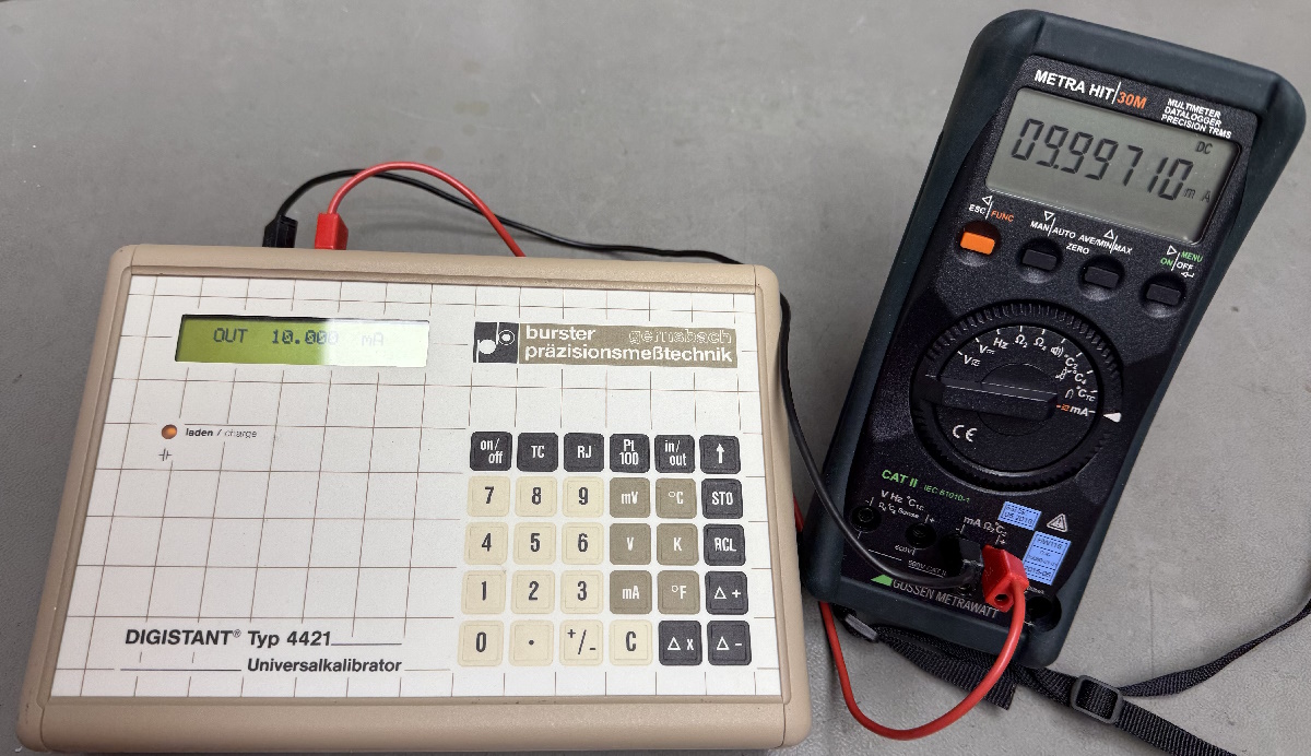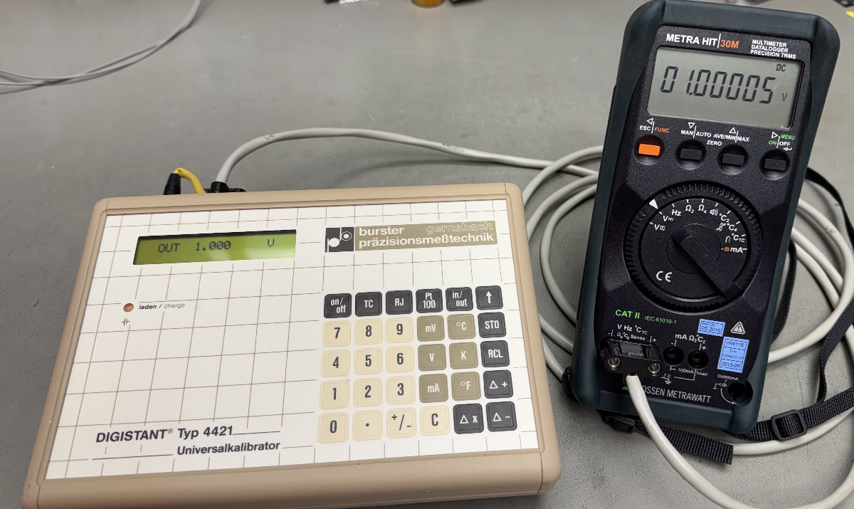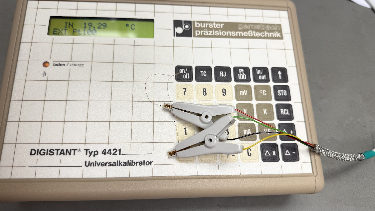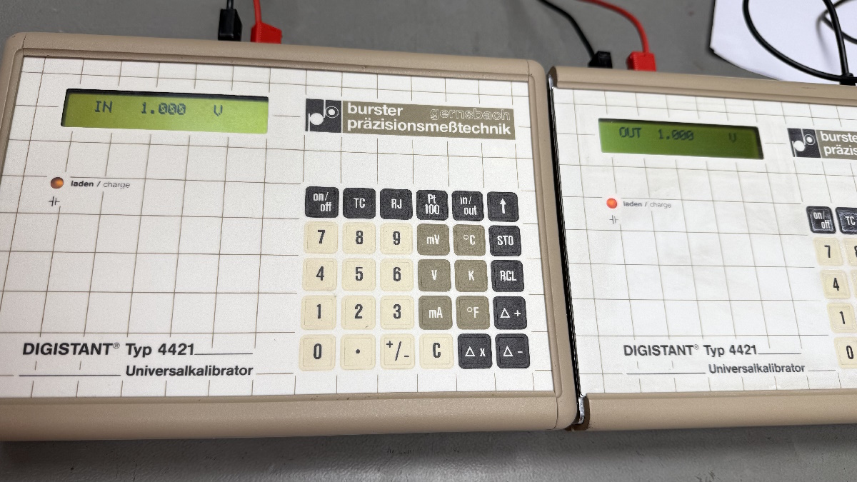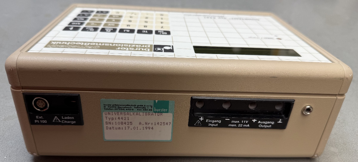 Ich verkaufe einen burster DIGISTANT 4421. Der Universal-Kalibrator ist grundgeprüft und liefert diverse Kalibriersignale zum Überprüfen von Temperaturmess- und Regelgeräten. Der eingebaute Akku ist noch gut in Schuss - Angaben zur Nutzungsdauer im Akkubetrieb kann ich aber nicht machen. Ob die ursprüngliche Spezifikationen noch eingehalten werden weiß ich nicht. Bei Interesse kann ich die Bedienungsanleitung inkl. dem Datenblatt als PDF vorab zur Verfügung stellen. Messen: Spannung bis 12V Strom bis 30 mA Thermoelemente Type R,S,B,J,T,E,K,U,L,N Widerstand 0..800 Ohm / Pt100 Geben: Spannung 1µV bis 11V Strom bis 2µA bis22 mA Thermoelemente Type R,S,B,J,T,E,K,U,L,N Lieferumfang: DIGISTANT 4421 Kalibrator MEANWELL Steckernetzteil Bedienungsanleitung in Papierform (Reprint) Preis 350,-€ inkl. Versand