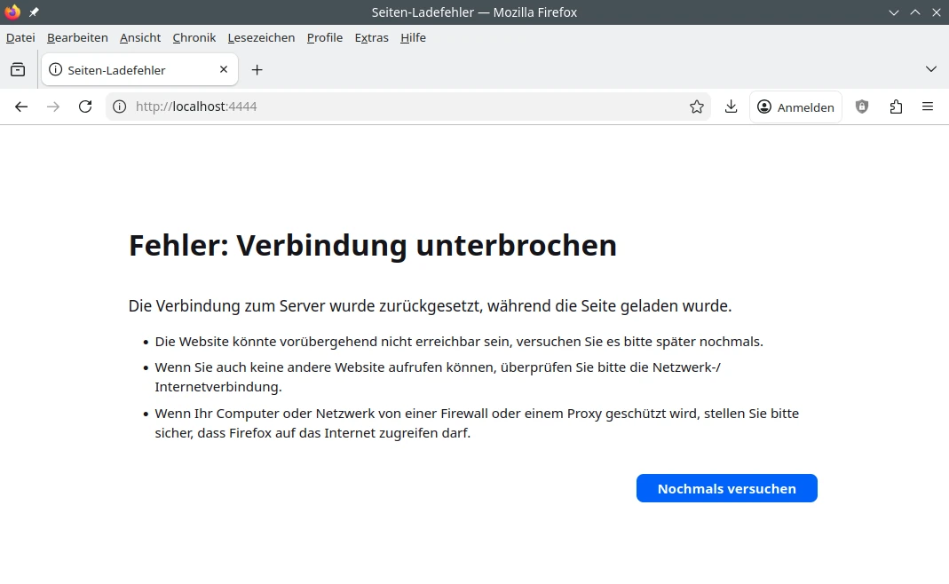 Nemopuk schrieb: > Der Browser kann zumindest melden ob es an der Namensauflösung hängt, > ob der Server die Verbindung abgelehnt hat, ob das TLS handshake > fehlgeschlagen ist (und warum), ob der Request nach erfolgreichem > Verbindungsaufbau abgewiesen wurde (und mit welchem HTTP Status und > Text), oder welcher Schritt in einen Timeout gelaufen ist. Ein guter Teil davon liefert eindeutige Fehlermeldungen, und wer’s genauer braucht, der kann mit F12 weitere Infos anzeigen lassen. Wenn mir mein Browser mitteilt, dass unter der angegebenen Adresse keine Verbindung aufgebaut werden kann, wie im Screenshot, dann heißt das recht eindeutig, dass unter der angegebenen Adresse auf dem angegebenen Port nicht zurückkommt. Warum das so ist, kann ich dann bei Bedarf in Erfahrung bringen. Wenn er mir mitteilt, dass der Server unbekannt ist, dann heißt das recht eindeutig, dass die Namensauflösung fehlgeschlagen ist. Warum das so ist, kann ich dann bei Bedarf in Erfahrung bringen. Wenn er mir einen Zertifikatsfehler meldet, dann ist das ebenfalls recht eindeutig, und ich kann den Grund bei Bedarf in Erfahrung bringen. Wenn […] Ein Browser ist keine Netzwerkdiagnosesoftware – und mal ganz ehrlich: Wenn TE mit einem Webbrowser auf eine von ihm aufgesetzte Maschine verbinden will, auf der er aber keinen Webserver eingerichtet hat, dann würde ihm auch die detaillierteste Fehlermeldung nicht weiterhelfen, weil er sie nicht verstünde.