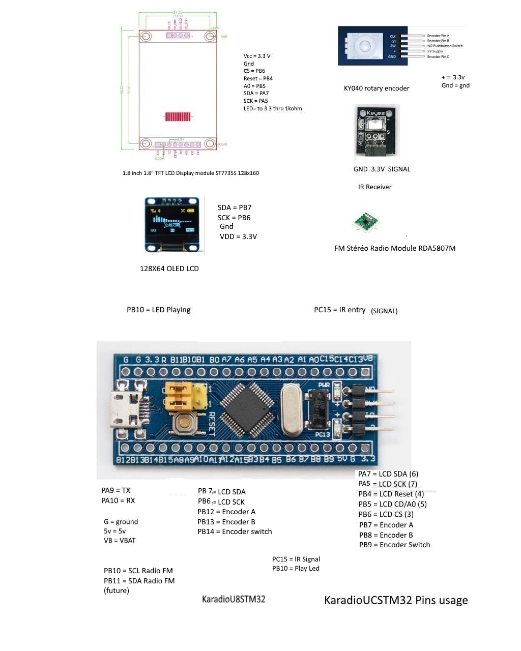 Hallo zusammen, ich möchte gerne mein KaRadio mit einem Blue Pill board ergänzen. Leider bekomme ich viele Fehlermeldungen beim Compilieren wegen nicht vorhandener Bibliotheken. Einige davon werden wohl auch nicht mehr von Arduino unterstützt (maple). Daher meine Frage: Hat jemand ein STM103 Board mit KaRadio laufen und könnte mir das Binary schicken? Projekt KaRadio hier: https://github.com/karawin/Ka-Radio Addons: https://github.com/karawin/karadio-addons/tree/master/karadioUCSTM32 VG Pete