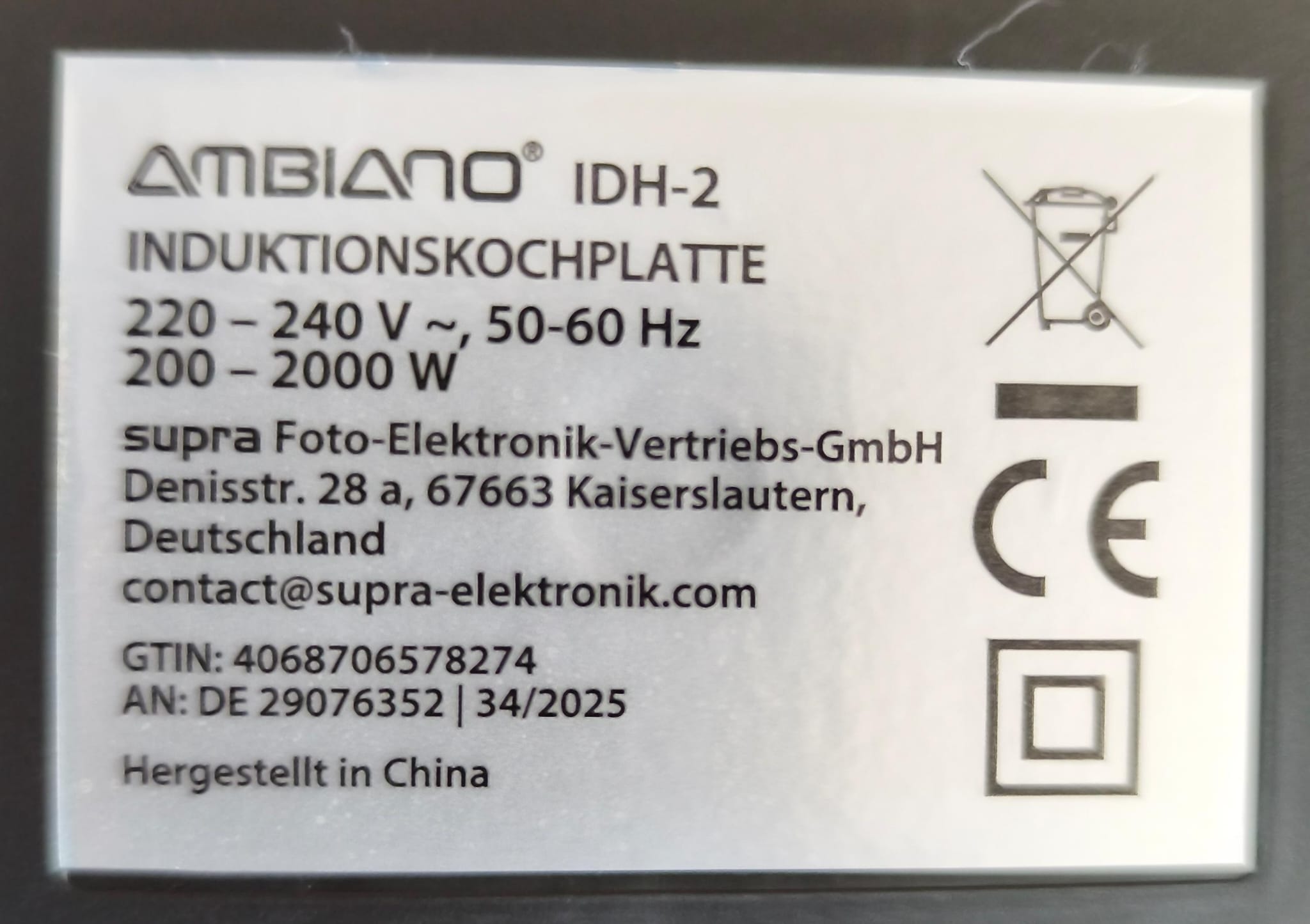 Mein Kollege hat vor einiger Zeit bei Aldi einen Einfeldinduktionskocher erworben. Er hat unter 30 Euro gekostet. Er scheint analog steuerbar zu sein, da bei den unteren Leistungsstufen das typische auf und abschwellen des Kochwassers ausbleibt. Man kann köcheln/sieden. Hier mal das Typenschild. Wer hat auch so ein Teil erworben, da immer gesagt wird das für einen solchen Preis das nicht möglich ist. MfG ein 81 Jähriger