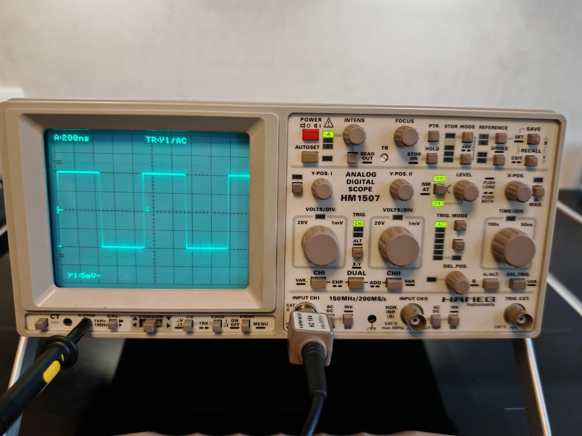 Ich verkaufe hier ein gebrauchtes Hameg HM1507-2 mit 2 Kanälen, Analog-/Digital-Betrieb und 150MHz Bandbreite. Das Gerät befindet sich in einem guten, gebrauchten Zustand, soweit ich das beurteilen kann. Minimale Gebrauchsspuren und Reste von Aufklebern sind vorhanden, siehe Fotos. Ich habe das Oszilloskop aus einem Nachlass erhalten, das Gerät war mein Ersatzgerät. Die komfortable Autoset-Funktion ermöglicht schnelle Messungen. Mit den tiefgreifenden Funktionen habe ich mich nie beschäftigt und kann deshalb keine Aussage zur vollständigen Funktionalität treffen. Zum Gerät gehört keinerlei Zubehör. Versand ist möglich, aber nicht bevorzugt. Zahlung nur per Paypal Freunde und Bekannte oder Überweisung, bei Abholung natürlich in bar. Der Preis von 220€ zzgl. Versandkosten i.H.v. 20€ versteht sich als Festpreis. Privatverkauf, keine Garantie, Gewährleistung oder Rücknahme. Irrtümer und Schreibfehler vorbehalten.