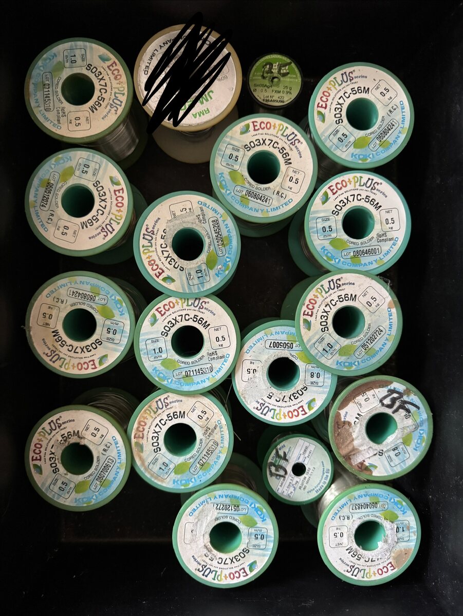 Moin zusammen, Aus der Auflösung einer „Hobbywerkstatt“ habe ich einiges an Lötzinn bekommen, welches ich persönlich nicht wirklich benötige bzw. nicht solche Mengen. Bei Ebay Kleinanzeigen gestaltet sich das ganze etwas schwierig, daher hoffe ich, dass es ok ist, dass ich’s hier anbiete. Vorhanden sind vorallem 0,5er und 1mm Stärken, wenig in anderen Maßen (kann ich bei Gelegenheit nachschauen falls Interesse besteht). Marke meist Koki EcoPlus. Aber auch andere Varianten sind vorhanden. Falls also jemand etwas braucht - gern auch größere Mengen - meldet euch gern. Grüße, Marcel