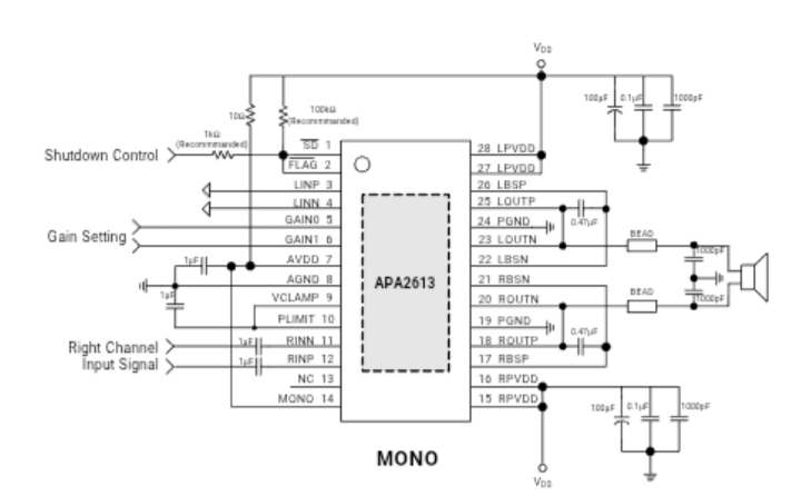 Das IC APA2613 hat min. 8V Versorgung. Das wären dann schon min. 2W Verlustleistung. IC könnte hinüber sein.