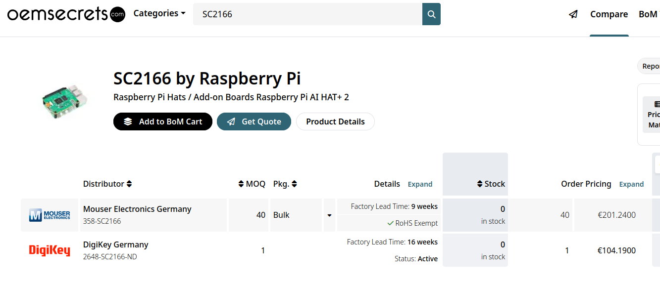 Eine OEMSecrets-Preisanalyse zeigt dann die in der Abbildung befindlichen Resultate: wie so oft gilt auch diesmal, dass die “hauseigenen Reseller” vor den klassischen Katalogdistributoren beliefert werden.