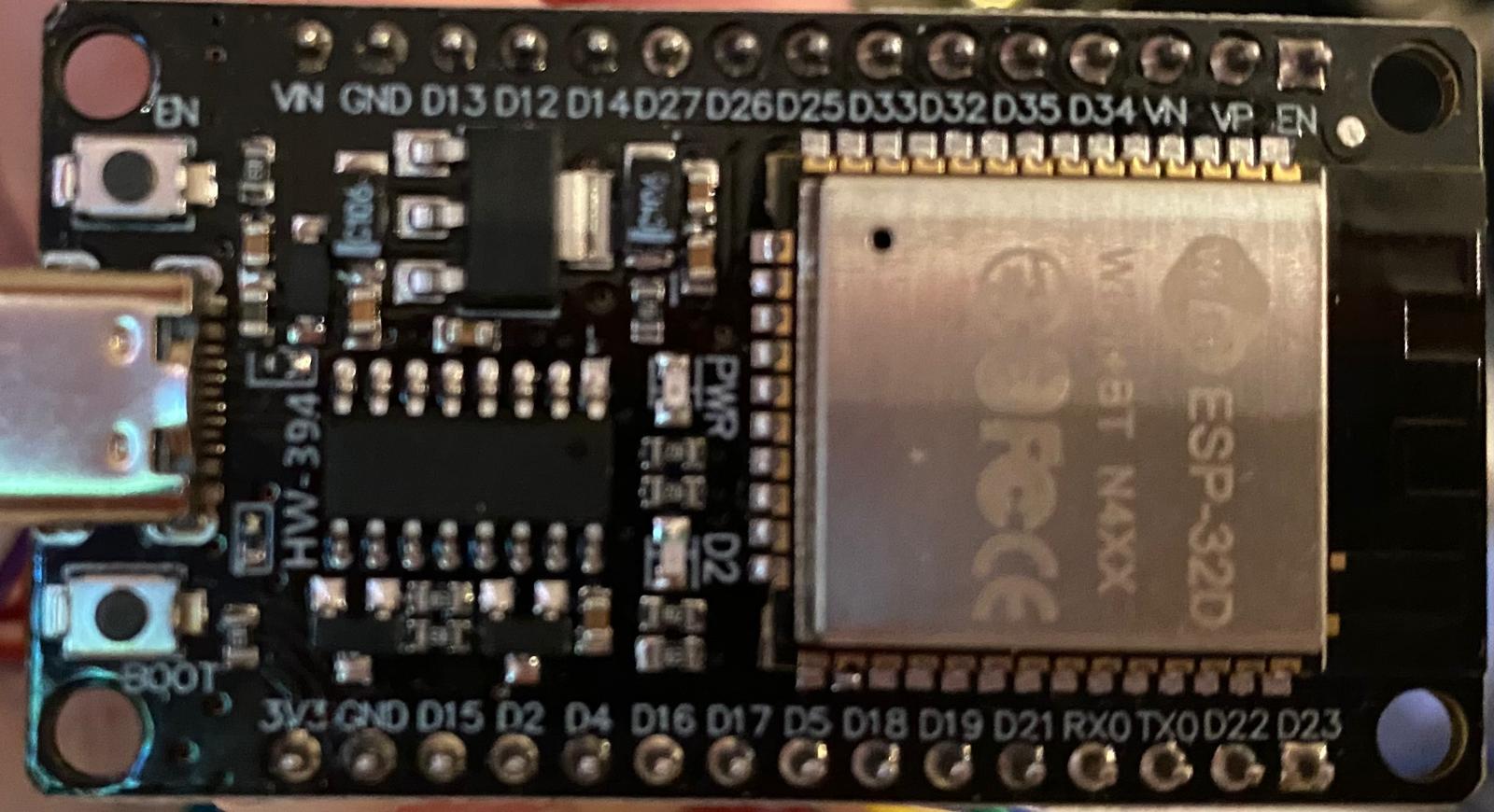 und Din an D32. Außerdem habe ich VIN und GND direkt an den ESP32 3,3v