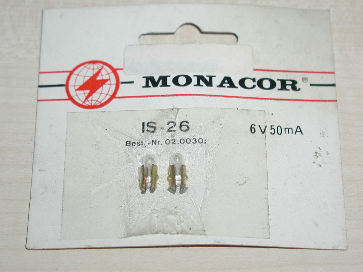 Verschenke 2 St. Monacor Leuchtmittel IS-26, 6V 50mA, Versandkosten als Großbrief für 2,50EUR.