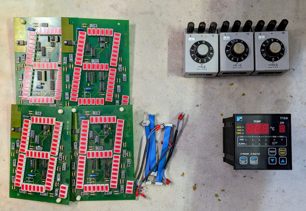 Nabend, Alles beim Aufräumen ans Tageslicht gekommen. Preise: T154 100€ Widerstandsdekaden Stück 15€ LED Ziffern zusammen 20€ Alles schon etwas älter, stammt aus Laborauflösung, war bis zum Schluss in Benutzung. Trotzdem: Privatverkauf, keine Gewähr. Standort Dortmund, Versand ungern. Bei Fragen, fragen 😉 Gruß Kolja