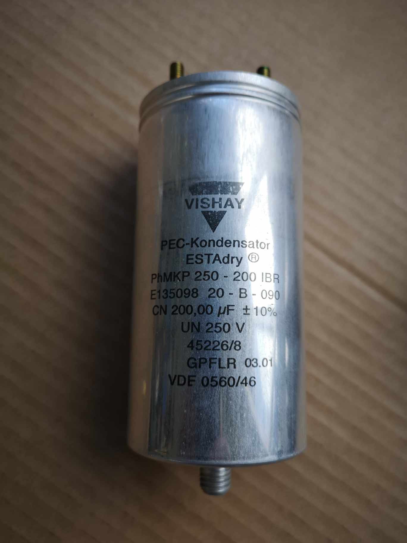 VISHAY PhMKP 250-200IBR 250 V 200 µF PEC-Kondensator/Capacitor – Neu (4x) VISHAY ESTADry deutsche elektrodlose Filmekondensatoren Menge: 4 stück Eine Lieferung ist nur nach vorheriger Vereinbarung möglich. 80,-Eur (4 stück)