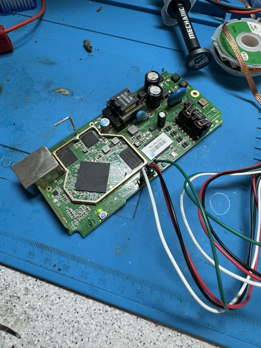 Hallo, ich habe hier einen Fritz Powerline 1260 Adapter vor mir liegen. Dieser bootet die ganze Zeit neu, man bekommt keine LAN bzw. WLAN Verbindung zustande. Einen Bootlog konnte ich mitschneiden (s. Anhang). Was mir erstmal auffällt sind die NAND Korrekturen. Könnte das schon eine Ursache des ständigen Neustartens sein? Die Versorgungsspannung sind stabile 3V3.