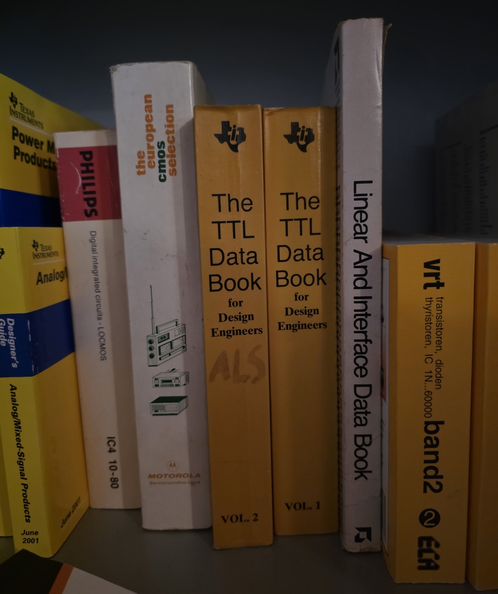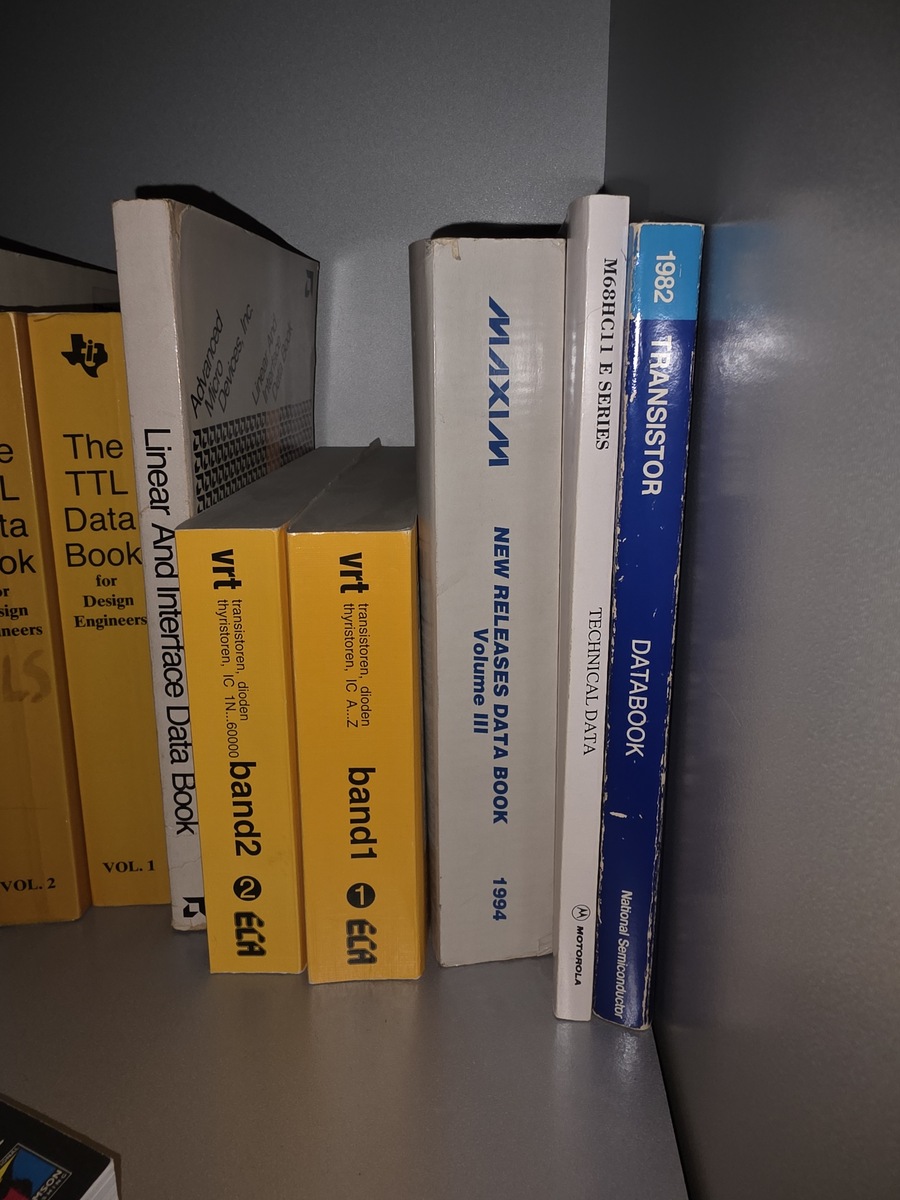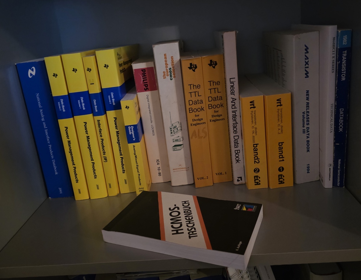 Biete hier verschiedene Bücher an. Bitte macht mir ein Angebot. 1x HCMOS-Taschenbuch, 6. Auflage 1x National Analog and Interface Products Databook, 2001 3x Texas Instruments, Power Management Products, 2000 1x Texas Instruments, Interface Products, 2000 1x Texas Instruments, Analog/Mixed-Signal Products, Designers Guide 2001 1x Phillips, Digital Integrated circuits IC4 10-80 1x Motorola, The European CMOS Selection 2x Texas Instruments, The TTL Data Book for Design Engineers 2x ECA, VRT Band 1 + 2, Transistoren, Dioden Vergleichstabellen 1x Motorola, Technical Data HC11 1x Maxim, New Releases Data Book, 1994 1x National Semiconductor, Transistor, 1982 1x Advanced Microdevices, Linear and Interface Data Book. Bei Fragen bitte melden.