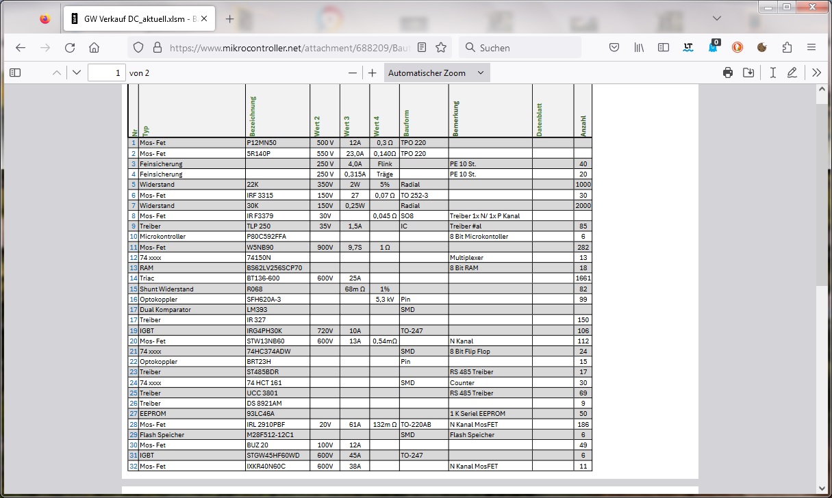 Hallo, ich habe Teils größere Mengen an Elektronik Bauteile zu verkaufen. Die meisten sind für Leistungselektronik gedacht, bei Interesse kann ich eine Excelliste zusenden. Danke.