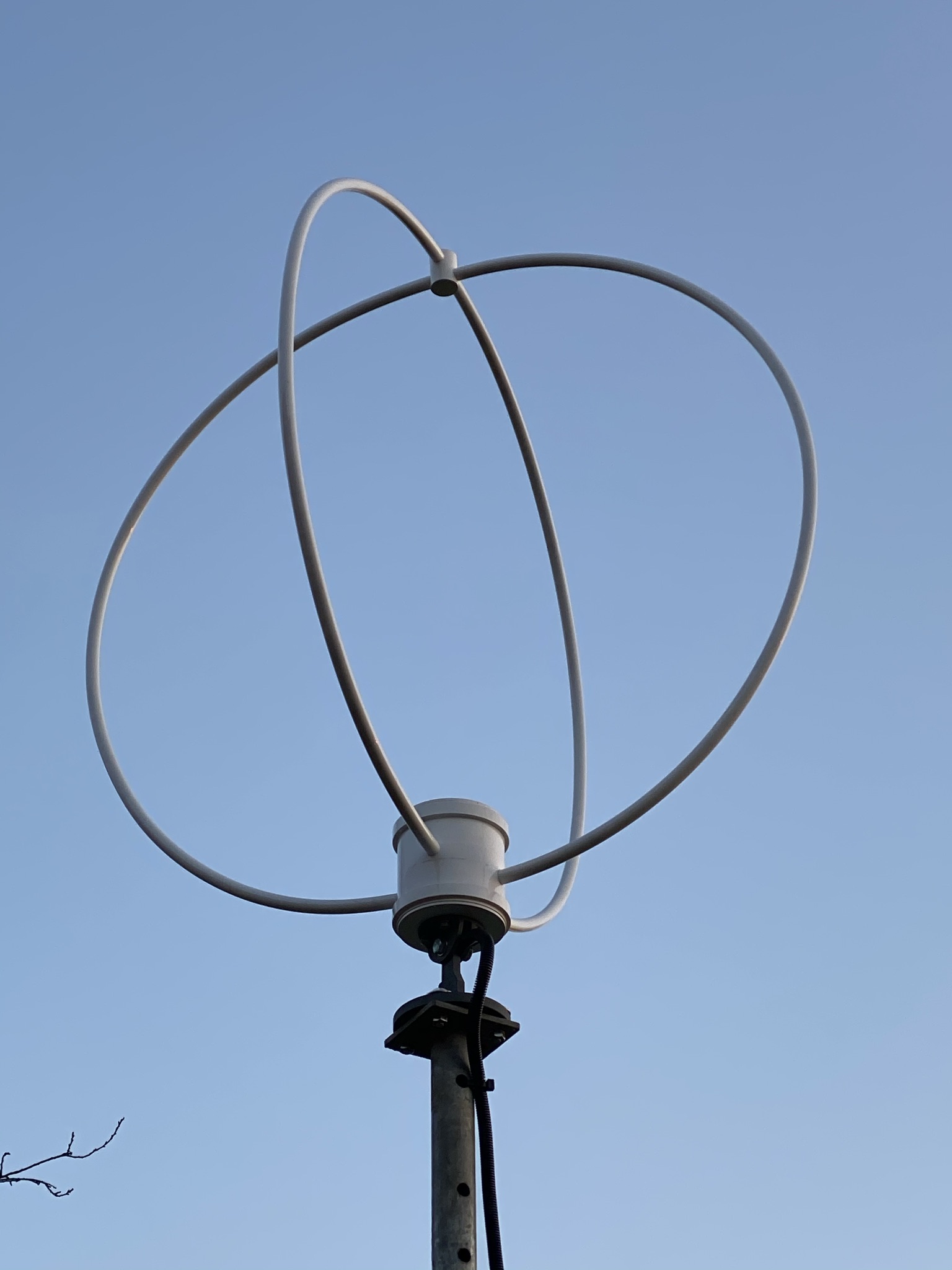Ja, der Verstärker ist von Chavdar Levkov, LZ1AQ, fix und fertig aufgebaut im Netz zu bekommen. Vorher betrieb ich eine „Mini-Whip“ auf'm Dachboden. Davor hatte ich schon einmal eine kreuzgekoppelte Loop (Zwei Ringe untereinander) gebaut. Diese jetzige gefiel mir nicht nur optisch besser - sie hat auch durch viel Empirie die besseren Ergebnisse erzielt - egal ob Sommer oder Winter (hauptsächlich 20-80m und eher DX). Der Verstärker ermöglicht eine perfekte Ankopplung (einfaches CAT7-Kabel reicht). Einzig, die Höhe ist noch nicht optimal; sie steht auf einer ausgezogenen Baustütze (...).