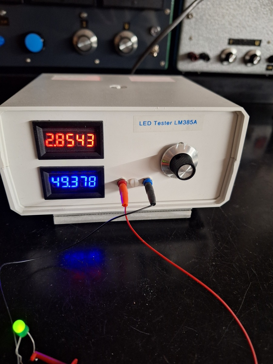 Servus, die Schaltung/en von Arno bzgl. LM385 und TL431 nachgebaut. Bei dem TL431 ist kein Panel zu verwenden, da der Minus in der Schaltung nicht der Direkte ist. Im Gegensatz zum LM385 funktioniert das top! Ein paar Bilder vom LM385 mit LED grün 22mA und LED rot 2mA im Test. Nochmals merci an alle, die mitgewirkt, um mein "Gedankenspiel" bzgl. LED Tester doch noch umsetzen zu können. MfG Eppelein