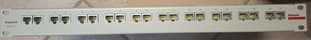 Moin, angeboten wird hier ein gebrauchtes 20-fach Patchfeld von Dätwyler in gutem Zustand. Lag hier als Reserve für eine Erweiterung herum und wird nun nicht mehr gebraucht. Wurde trocken gelagert, stammt aus einem tierfreien Nichtraucherhaushalt. Abholung (01705) bevorzugt, Versand ist bei Kostenübernahme möglich. Ich hätte gerne 5 Euro für die Hobbykasse, sollte das einen Interessenten überfordern, gibt es das Teil auch geschenkt, steht im Weg. Thomas