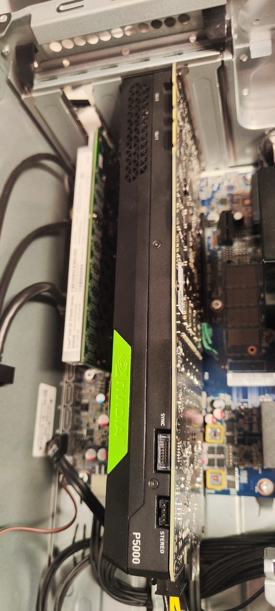 Aufgrund von Systemwechsel, ist die Grafikkarte übrig. NVIDIA QUADRO P5000 16GB. NVIDIA, GPU: Quadro P5000. Separater Grafik-Adapterspeicher: 16 GB, Grafikkartenspeichertyp: GDDR5X, Breite der Speicherschnittstelle: 256 Bit. Maximale Auflösung: 7680 x 4320 Pixel. DirectX-Version: 12.0, OpenGL-Version: 4.5, Dual-Link-DVI. Schnittstelle: PCI Express x16 3.0. Kühlung: Aktiv Preislich stelle ich mir 300 Euro inkl. Versand innerhalb Deutschlands vor. Den passenden Rechner HP Z440 Workstation dazu kann ich auch bei Bedarf für 400 Euro extra inkl. 128GByte DDR4 Ram und 20 Kern Xeon anbieten.