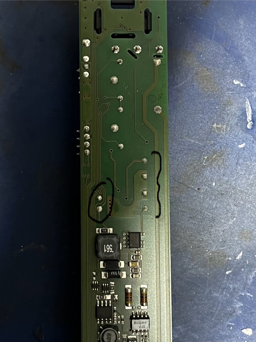 Wolf17 schrieb: > Sind die drei Elkos aus dem ersten Bild parallel geschaltet? > > Ich würde die Elkospannung verkabeln und extern wegen fehlender > Netztrennung nicht mit Oszi, sondern mittels zwei isolierten Multimeter > überwachen. Eines für DC und ein breitbandiges für den AC Ripple. > Dann noch beide Spulenspannungen extern mit LED anzeigen. > > Damit sieht man im Fehlerfall, ob das Netzteil, die Funkansteuerung oder > ein Relais schuld ist. > Wenn es die Funkansteuerung ist, dann deren Betriebsspannung extern > überwachen. Damit bin ich leider raus. Ich habe nur ein Multimeter zur Verfügung. Im Foto sieht man die Leiterbahnen der Elkos und deren Anordnung.