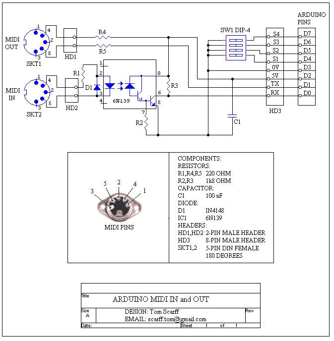 Hallo, ich versuche gerade eine Adapter-Platine zu bauen mit der man ein MIDI-Signal von einem Instrument (in meinem Fall ein Sampling-Keyboard) über UART einlesen kann. Den Schaltplan habe ich im Internet gefunden. Vielfach sind die Aufbauten, die man so findet, sehr ähnlich. Das Problem ist nun leider, dass die Daten, die über die UART-Schnittstelle reinkommen völliger Unsinn sind. Manche Keyboard-Tasten tun überhaupt nichts, andere tun manchmal was, alles ist vollkommen zufällig (selbe Taste tut immer was anderes) und meistens kommen nur Null-Bytes (0b00000000) raus. Mit einem kommerziellen MIDI-USB-Adapterkabel funktioniert das Keyboard. Auch von einem kommerziellen MIDI-Player lässt sich über diese Schaltung absolut nichts einlesen. Als Einstellungen für den Serial-Port verwende ich folgendes: - 31.250 bps - 8 Datenbits - 1 Stop-Bit - keine Parität - Flow Control deaktiviert Hat jemand evtl. eine Idee ob die Schaltung grundsätzlich so stimmt?