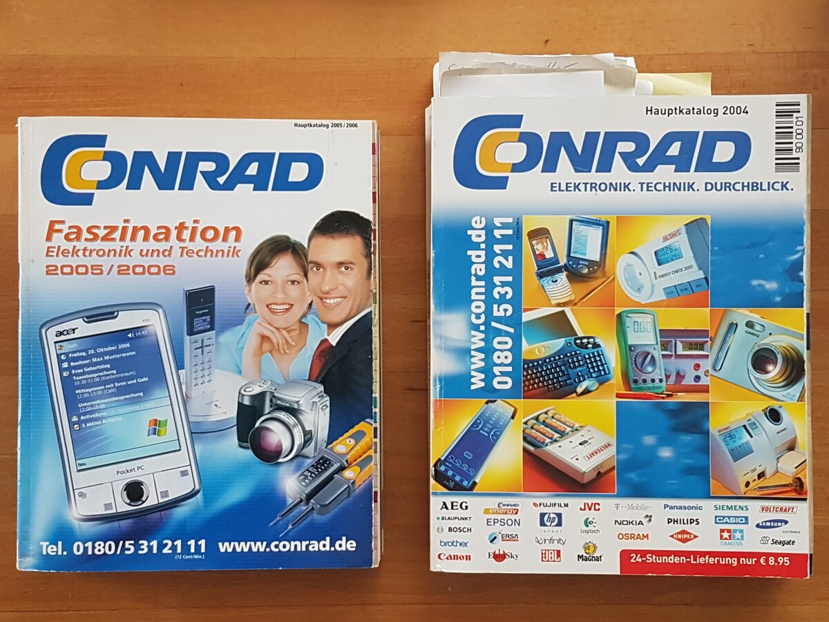 Hallo, ich brauche jeweils zwei Seiten aus den Conrad-Hauptkatalogen 1999 bis 2005 (außer 2001, den fand ich bei Youtube). Wer hat die noch und und kann mir jeweils die zwei Seiten scannen oder fotografieren? Was ich suche ist nur in den regulären dicken Hauptkatalogen zu finden, nicht in "Compact", "Modellbau" oder ähnlich abgemagerten Sonderausgaben. Auch nicht in "Business". Ich würde die Kataloge auch kaufen, aber mehr als 5€ pro Katalog will ich nicht ausgeben.