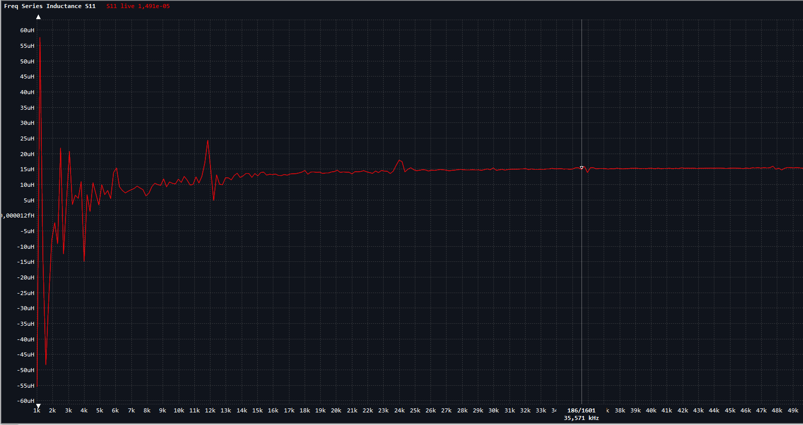 Dieter D. schrieb: > hochgeheimen Spule Meinst du den Übertrager/Flyback-Trafo oder meinst du L3 aus dem Schaltplan? L3 ist eine AGM2222-222 von Coilcraft. Beim Übertrager mit offener Sekundärseite habe ich die Messungen im Anhang gemacht, ich weiß allerdings nicht, wie genau der NanoVNA im unteren Frequenzbereich ist.