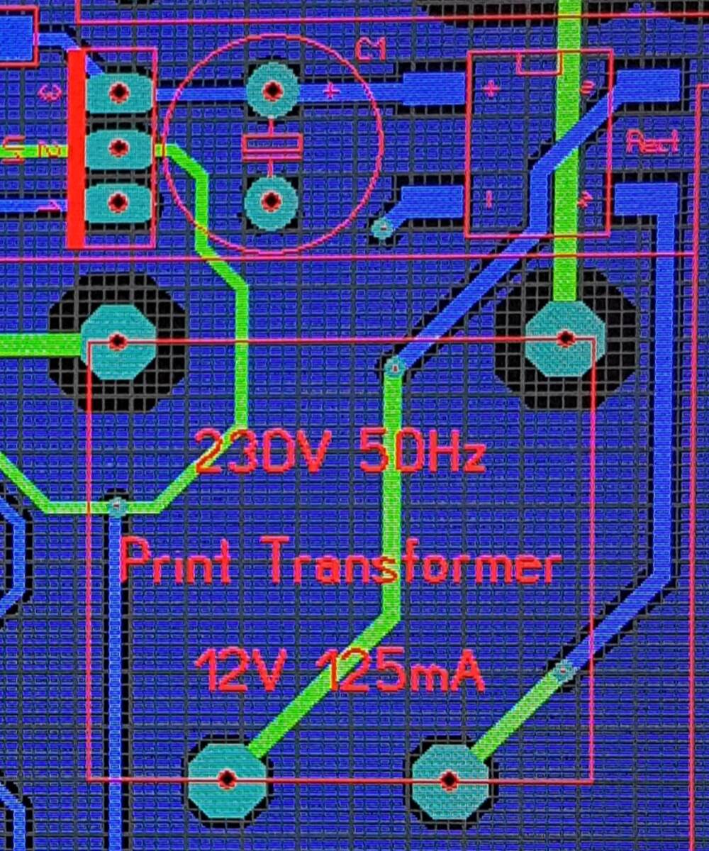 Du kannst die Aura von den Lötpads einstellen! An diesem Netzteil-Beispiel siehst du an den Pads auch eine Aura (0,5 mm). Auf der Oberseite sind blaue Leiterbahnen und eine blaue Massefläche und auf der Unterseite sind auch noch mal grüne Leiterbahn zu sehen.