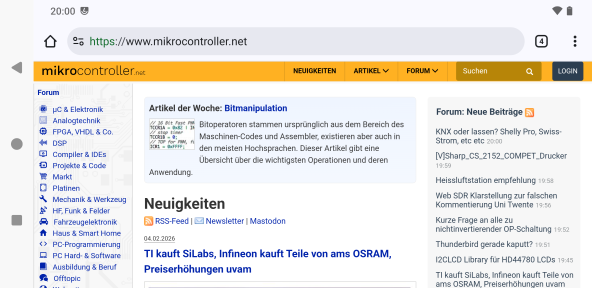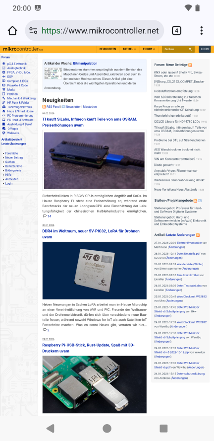 Habe mir mal den Screenshot aus dem 1. Beitrag auf dem Galaxy anzeigen lassen, das sieht nicht schlecht aus. Im Format 1080x1920 ist die Schrift zwar ziemlich klein, wäre aber als Seitenübersicht perfekt. Im Format 1080x1920 ist der Text dann gut leserlich. Bild 3 und 4 zeigt die Startseite des Forums in der mobilen Ansicht. Nicht wirklich der Hit, weder hoch noch quer. Man vergleiche den dargestellten Inhalt der Screenshots 2 und 4. René H. schrieb: > Bei Samsung schauen, ob es "DeX" kann Am Sonntag habe ich Zugriff auf ein rel. neues Samsung. Mal sehen, wie es sich dort verhält.