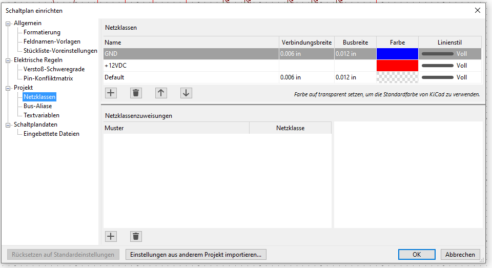 Hallo und guten Tag Die zuweisung von Netzklassen schein in KiCad Version 9.0.7 anders als in Version 7 zu sein. Au diese version beziehen sich fast alle Videos und Beschreibungen im internet. Wenn ich in Version 9.0.7, im Erstellungsdialog unter Netzklassen, neue Netzklassen erstelle, kann ich Diese in selbigem Dialog, anwählen und editieren usw... Im Platinen-Editor, möchte ich nun einem Leiterbahnzug mit Lötpads, eine der neuen Netzklassen zuweisen. Doch im Zuweisungsdialog der Leiterbahn, oder der Lötpads, erscheinen die neuen Netzklassen (zB. GND oder +12VDC) gar nicht zur Auswahl. Wie weise ich einem Leiterbahnzug, in KiCad 9, eine selber erstellte Netzklasse zu? Mit freundlichen Grüssen! Peter_Hu