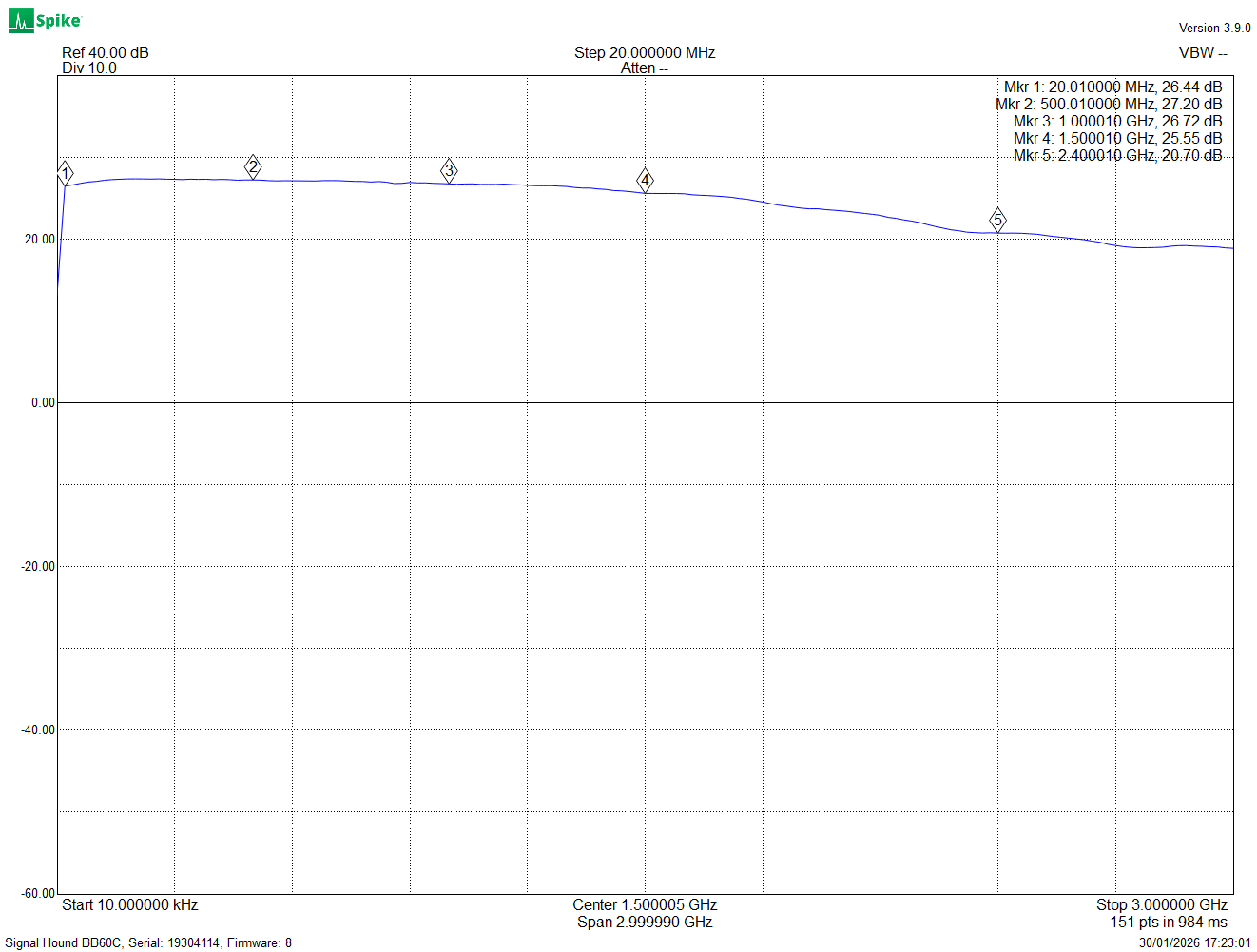 https://aaronia.com/de/aaronia-mdf-500khz-60mhz damit ist der Verstärker nicht überfordert. 60 Millihertz laut URL, (eigentlich 60 MHz) sind noch weit unter den 2 GHz.