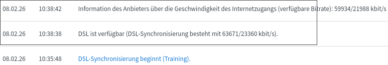 Rene K. schrieb: > DAS sagt rein garnichts über die tatsächlich Geschwindigkeit aus, Doch tut es. Die Fritzbox kennt den Vertrag nicht. Vertragsdaten werden nicht über die Leitung gebracht. Ich habe einen 60 Mbit Vertrag, bekomme meistens aber ca. 5 Mbit mehr, was alle Test-Tools ebenso wie manuelle Downloads bestätigen. Die tatsächliche Upload Rate ist sogar um ein vielfaches höher, als im Vertrag festgelegt.