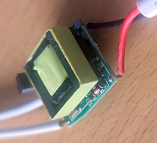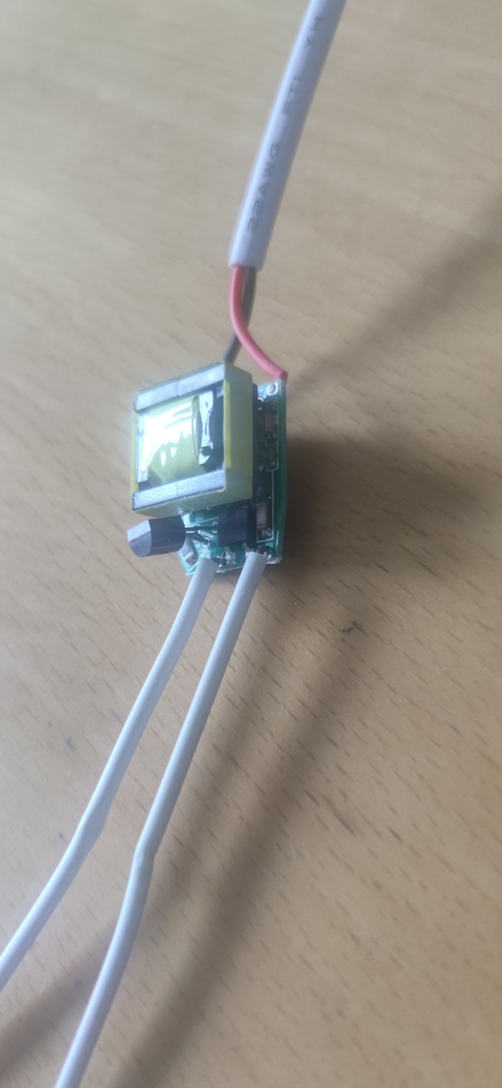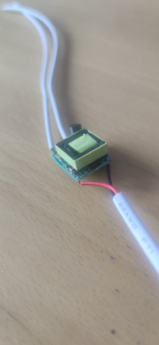Ich habe das Foto mal an CHATGPT.COM übergeben und eine Antwort erhalten. Vielleicht kannst Du das ja noch weiter mit CHATGPT vertiefen und kommst so zu einer Lösung. Das war die Antwort: Sieht nach einem sehr kleinen Schaltnetzteil (Flyback-Wandler) aus – genau die Sorte, die man z. B. in LED-Lampen, Nachtlichtern, Sensoren oder Lade-/Steckernetzteilen findet. Was man aus dem Bild recht gut ableiten kann: 🟡 Gelber Block = Übertrager → spricht klar für ein isoliertes Schaltnetzteil ⚪ Zwei weiße Drähte auf einer Seite → sehr wahrscheinlich Netzspannungseingang (230 V AC) 🔴⚫ Rot / Schwarz auf der anderen Seite → Niederspannungs-DC-Ausgang 📏 Sehr klein & wenig Bauteile → geringe Leistung (typisch 1–5 W, evtl. bis ~10 W) Wahrscheinliche Einsatzarten LED-Treiber (z. B. 3–12 V DC für LEDs) Mini-Netzteil für Elektronik (5 V, 9 V oder 12 V) In fest verbauten Geräten (nicht als Steckernetzteil gedacht) Was es nicht ist Kein Trafo-Netzteil (zu klein, keine Eisenlamellen) Kein USB-Netzteil mit Regelung/Schutz aufwendig – eher simpel Wie du es genauer bestimmen kannst Falls du es gefahrlos testen willst (⚠️ Vorsicht, Netzspannung!): Beschriftung auf der Platine (Rückseite?) – manchmal steht z. B. „5V“, „12V“, „LED“ Ausgangsspannung messen (Multimeter, ohne Last und mit kleiner Last) Prüfen, ob der Ausgang konstant Spannung (Netzteil) oder konstant Strom (LED-Treiber) liefert 👉 Wenn du willst, sag mir: woher das Teil stammt (Lampe? Gerät?) oder schick ein Foto der Rückseite der Platine Dann kann ich ziemlich genau sagen, was rein darf und was rauskommt 🙂