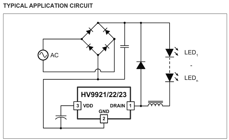 Ah ja! https://www.microchip.com/en-us/product/HV9921 Nicht netzgetrennt Der Anschluss VDD ist nur zum Abblocken?