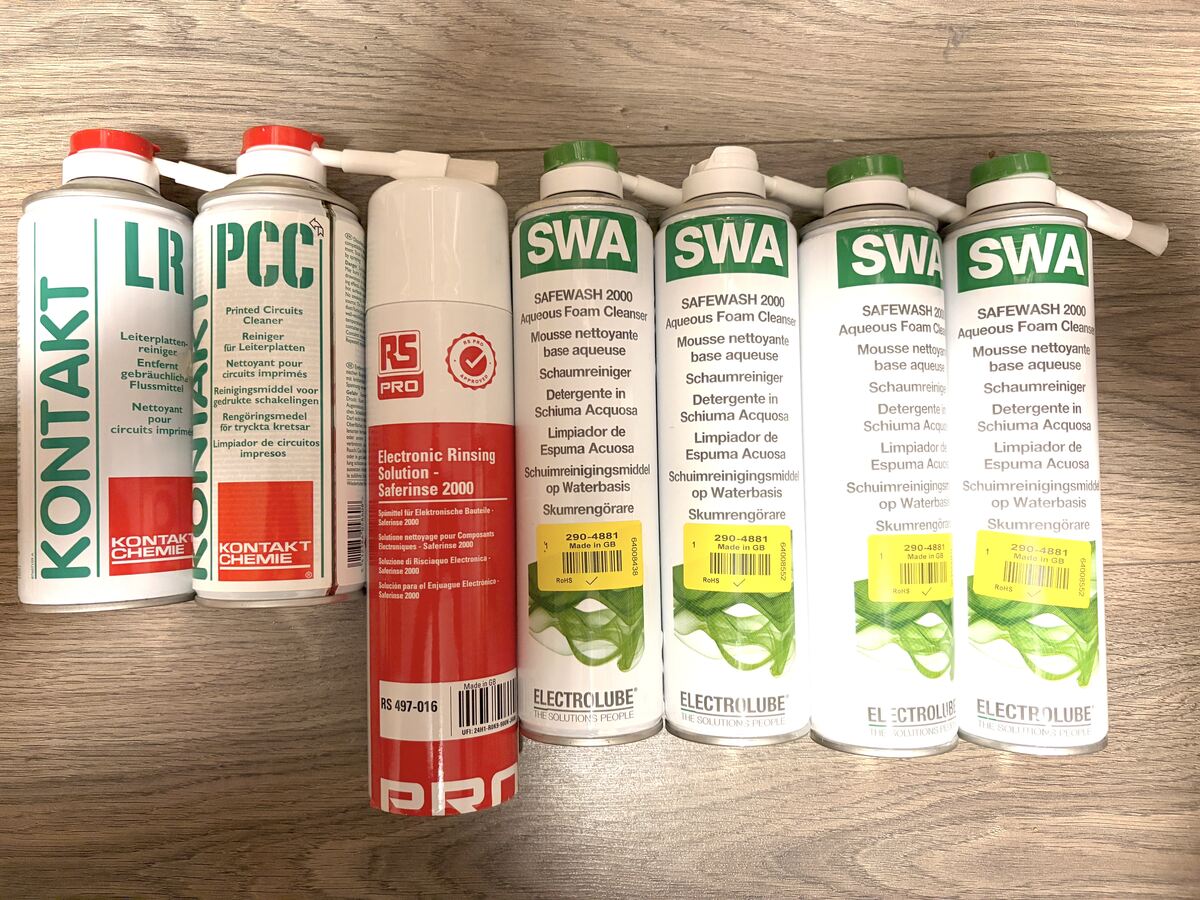 Hallo! Ich habe hier paar Dosen Leiterplattenreiniger zu verkaufen. Natürlich alle neu. 1x Kontakt Chemie LR. 400ml. Ablaufdatum 02/27. 10 Euro Auf den folgenden Flaschen steht "Zu Verwenden vor 09/2024". Ich hatte damit bisher noch keine Probleme. 4x Electrolube SWA Safewash 2000 400ml. Pro Flasche 10 Euro. 1x RS PRO Electronic Rinsing Solution - Saferinse. 400ml. 10 Euro Die Portokosten würden wir uns teilen (DHL, 7 Euro, also je 3,50 Euro) Wenn mir jemand alles abnimmt, dann geht Porto auf mich. Bei Interesse bitte Mail an thkusch ät gmail.com Grüße, Thomas