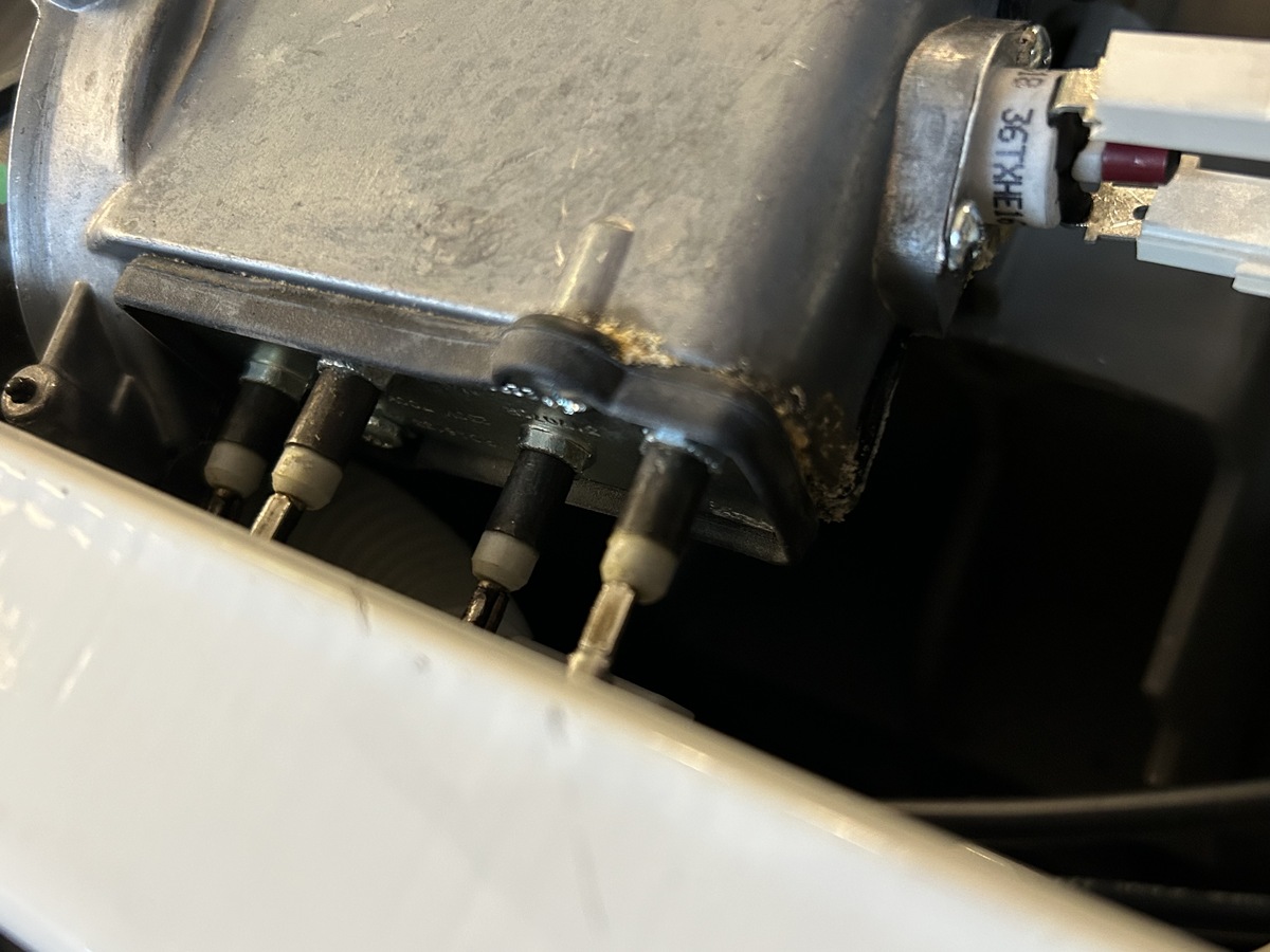 Andreas S. schrieb: > 2.) oder die Heizspirale(n) in der Trockeneinheit selber sind defekt. Es sind augenscheinlich zwei Heizspiralen verbaut, ob einmal die beiden oberen und unteren Anschlüsse zu einer gehören oder die diagonalen ist so nicht zu erkennen, das Ohmmeter sollte es verraten. Wenn ich richtig vermute, werden die beiden getrennt angesteuert und sollten einen Widerstand von ungefähr je 30 bis 50 Ohm aufweisen. Messung ausschliesslich bei gezogenem Netzstecker!