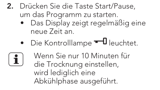 5.) Danach habe ich nur die Taste Trockenzeit gedrückt
