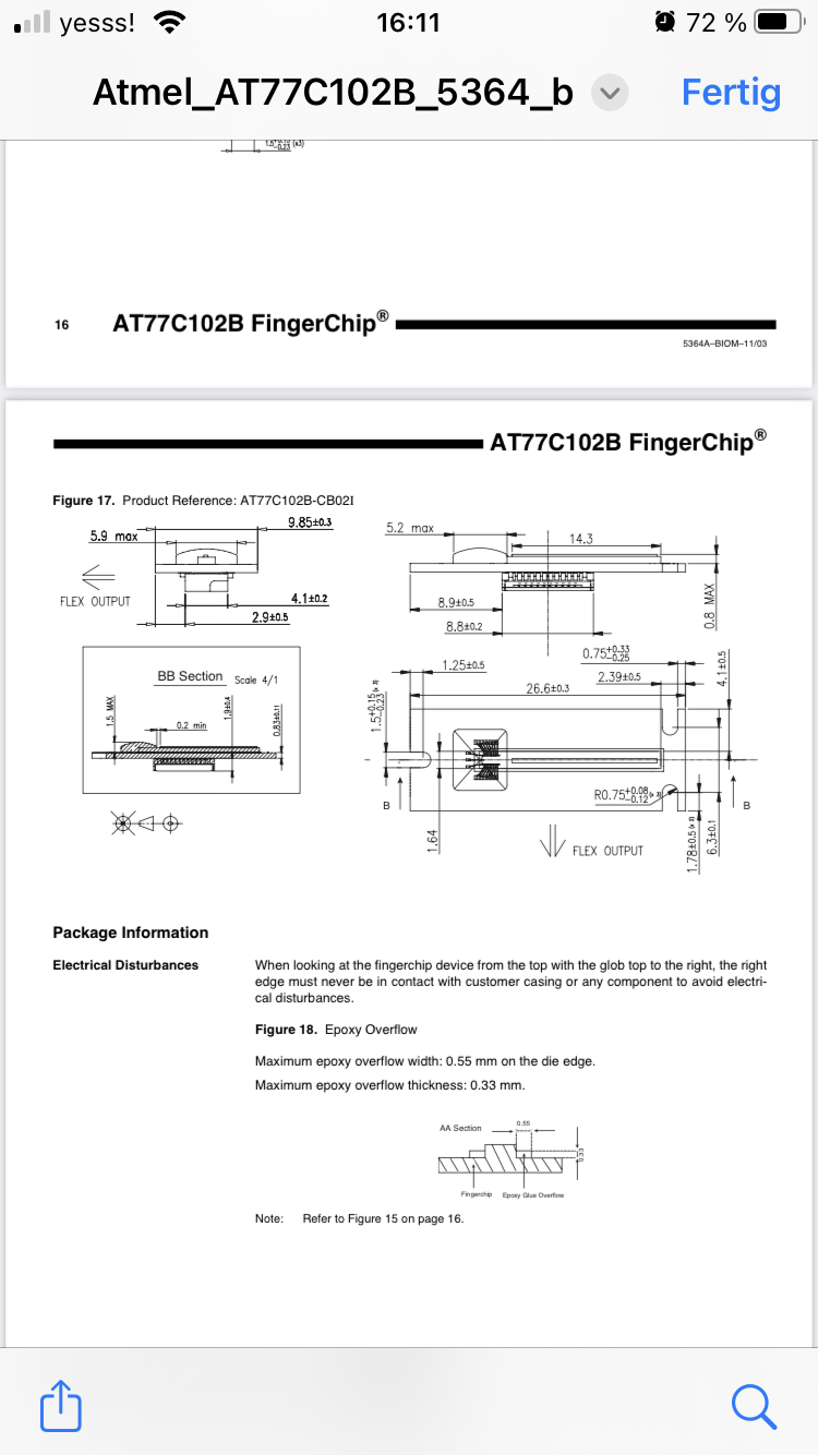 Hallo Ich brauche für einen Atmel Fingerchip ein passendes Flexkabel mit einer Länge von 9cm Habe das Datenblatt des Chip ich kann aber leider noch damit anfangen. Atmel AT77C102B-CB0I Kann mir vielleicht jemand ein passendes Kabel raussuchen wo man von privat bestellen kann. Mit freundlichen Grüßen