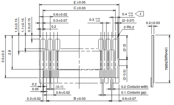 Im Datenblatt steht das hier: Note: 1. Ref Connector: FH18-21S-0.3SHW (HIROSE). https://mm.digikey.com/Volume0/opasdata/d220001/medias/docus/883/FH18.pdf Damit ist klar, daß das Rastermaß *0.3 mm* beträgt, und daß die Kontakte des Flachbandkabels in zwei Reihen versetzt angeordnet sind (Hirose-Datenblatt, S. 51 (5 von 8).