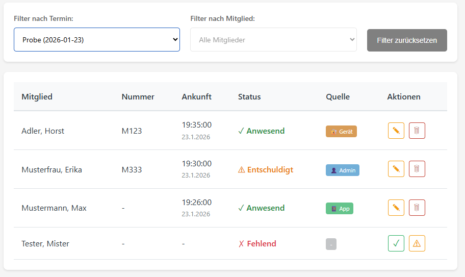 >Erfassung und Auswertung von Anwesenheit und Ankunftszeit >fürs Ehrenamt over engineered Die Zeit ist deine Freizeit. Die Zeiten fürs Ehrenamt ggü Finanzamt gibt auch nur einen "Fest Betrag" mehr nicht ..... Und das nur für sehr wenige und das fast nie Mitglieder Anwesenheitskontrolle Wieso sollte ich mir das antun ?