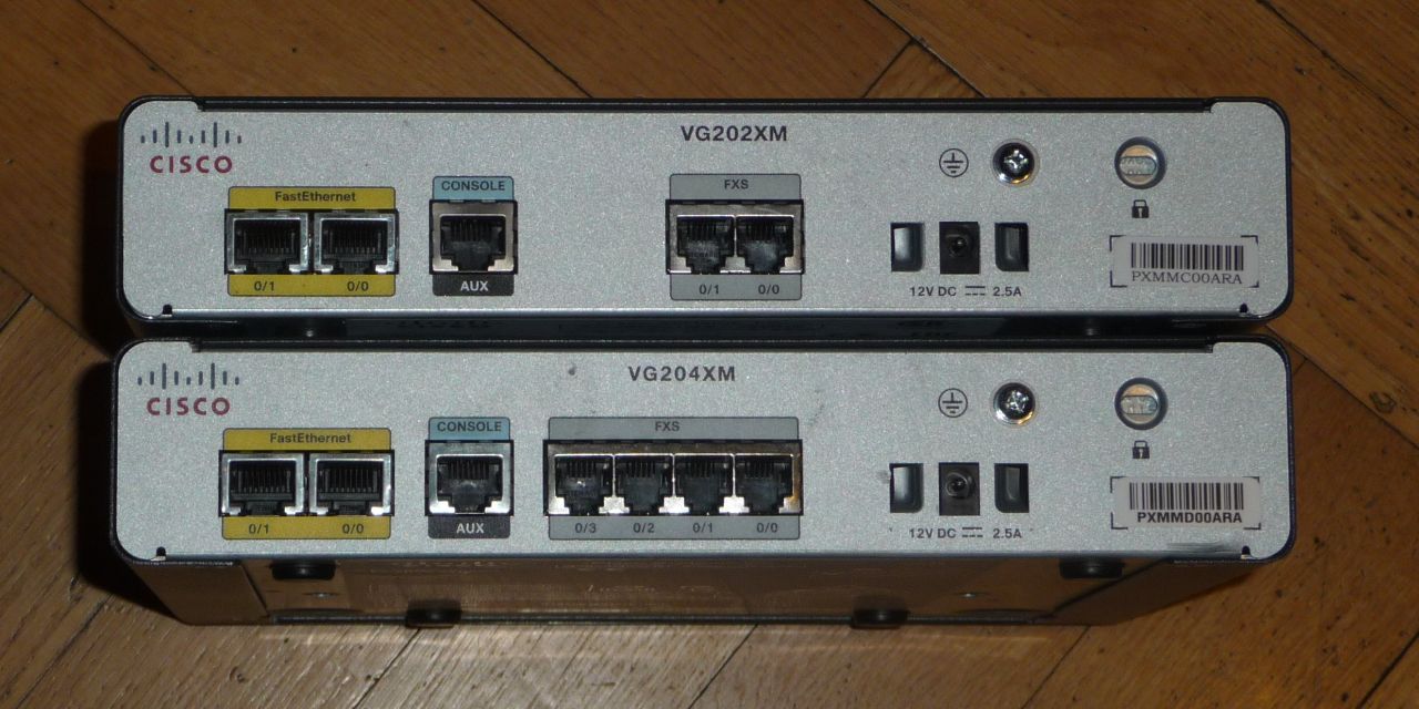 Ich biete hier 2 gebrauchte Analog Voice Gateways an, VG202XM und VG204XM für 2 bzw. 4 analoge Teilnehmer. Es handelt such um einen Fehlkauf meinerseits, ich habe die Dinger nicht weiter genutzt. Sie scheinen aber zu funktionieren, jedenfalls kann man an der RS232-Schnittstelle "Console" in das Einrichtungs-Menue kommen, ich kann aber keine Garantie geben, Privatverkauf. Dazu gibt es ein (1) Netzteil 12V 3A und eine kleine Kabelpeitsche für den RS232-Anschluss RJ45 auf DSUB9. Beide zusammen 20 Euro incl. Versand als Paket.