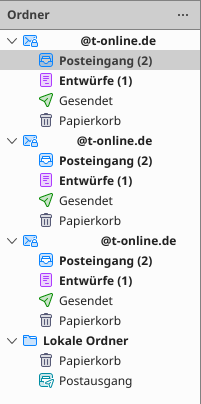 Erhielt den Tipp, doch den T-Punkt ein paar Orte weiter aufzusuchen. Also sind wir ohne Termin dorthin geeilt und haben Glück gehabt. War gerade nicht viel los und ein wirklich kompetenter Mitarbeiter hatte Zeit für uns. Nochmal kurz zur History: Vor ca. 10 Jahren hatte ich für meine Frau eine zweite eMail-Adresse eingerichtet, das ging damals klick klick klick und fertig. Heute ist das eine Kirbe, die Ihresgleichen sucht. Tausend mal doppelte und dreifache Authentifizierung per Mail und SMS. Die Seitenstruktur alles andere als intuitiv, nichts mal eben für Tante Erna. Ich hatte deshalb beim Versuch der Einrichtung der dritten eMail-Adresse das Handtuch geworfen. Meine Frau hat das dann mit Hilfe der Telekom-Hotline zusammengefrickelt. Herausgekommen ist dann eine eMail-Adresse für Kinder, die dem Elternkonto untergeordnet ist. Laut dem T-Punkt Mitarbeiter hätte es in meinem Fall eine sog. Freemail-Adresse sein müssen. Da die Bindung des Kinderkontos an das Elternkonto nicht aufgehoben werden kann, muss die zuletzt eingerichtet eMail-Adresse gelöscht werden. Der Name ist dann für 90 Tage gesperrt :-( Ärgerlich ist, dass der Telekom Mitarbeiter das Problem mal eben aus der Welt hätte schaffen können. Aber dies ist nicht vorgesehen, Datenschutz und Haftung usw. Also alles nochmal zurück auf Start und nochmal die dritte eMail-Adresse neu eingerichtet. Wer es nicht hinbekommt, hat eben Pech gehabt. Man fängt bei der Telekom an und landet irgendwann im eMail-Center von t-online. Wer das laufend macht, kommt klar damit, für jeden anderen ist die Einrichtung ein Zumutung. Und ja, es braucht für jede eigenständige eMail-Adresse ein weiteres "Passwort für eMail-Programme". Dieses muss man sich bei der Einrichtung der eMail-Adresse um 5 Ecken und erneuter Authentifizierung bei t-online rauslassen. Das Hinzufügen der neuen eMail-Adressen in Thunderbird ist dann eine bessere Fingerübung, Ergebnis siehe Bild oben. An der Stelle vielen Dank an alle für die Tipps und Hinweise. Ganz besonders an Niklas G. für den Tipp mit dem Passwort für eMail-Programme. Das hatte ich nach 20 Jahren nicht mehr auf dem Schirm.