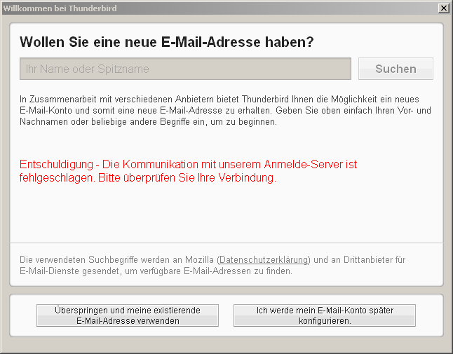 Hmmm schrieb: > Gustav K. schrieb: >> Die Fehlermeldung oben > > Warum klickst Du nicht einfach auf "Überspringen und meine existierende > E-Mail-Adresse verwenden"? Genau das willst Du doch tun, statt bei > irgendeinem Anbieter eine anzulegen. Man kann seine Mail auch manuell anlegen, so habe ich das tun müssen. Dieser Assistent ist nett gemeint, aber man kann sich nicht drauf verlassen.