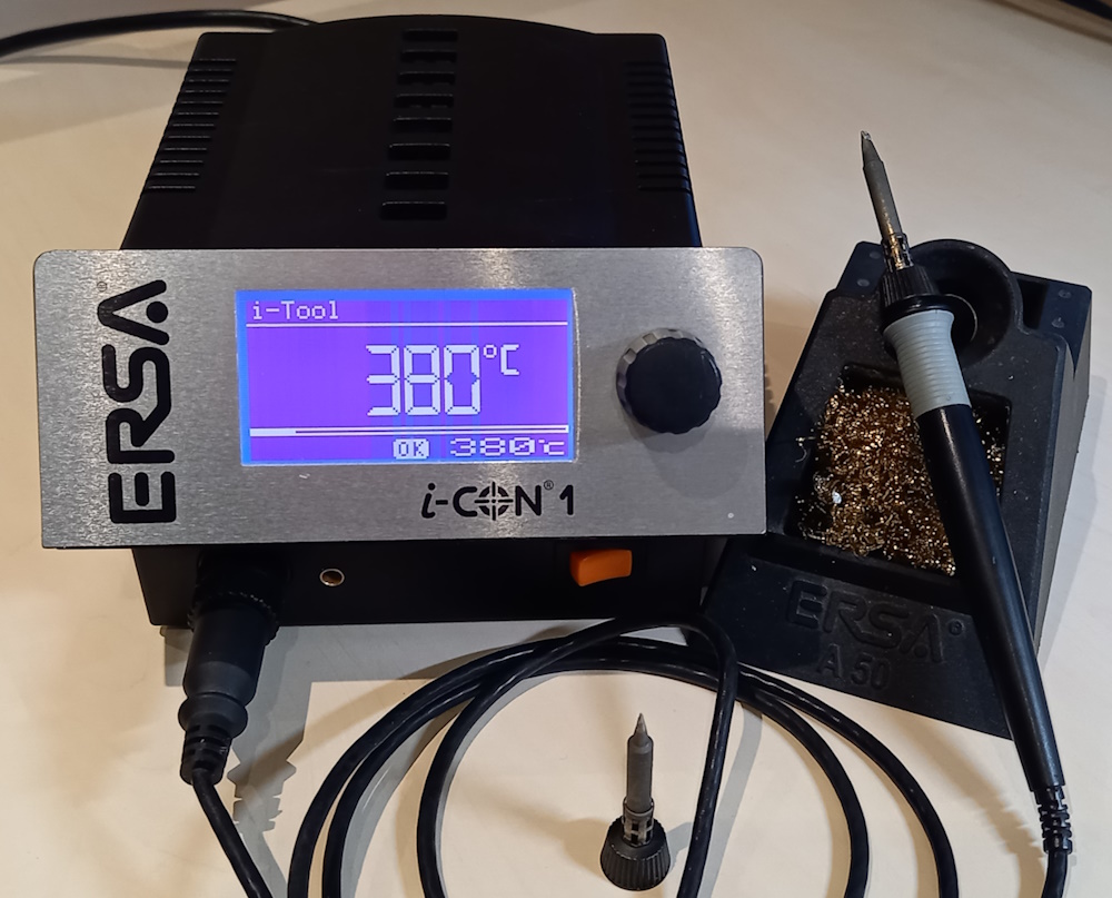 Moin, ich habe hier zwei Lötstationen von denen ich mich trennen möchte. * Weller PUD 80: 15€ Versorgungseinheit für die Lötstation WSD 80. Das Gerät ist schon ein wenig älter, funktioniert aber. Leider hat ein Trottel die Temperatur mit der heißen Lötspitze einstellen wollen und zwei Löcher in die Taster geschmolzen (siehe Bilder). * Ersa i-CON 1: 180€ Vollständige Lötstation mit Versorgungseinheit, Lötkolben, zwei Spitzen und Halter (siehe Bilder). Auch diese ist gebraucht, funktioniert aber. Die Preise verstehen sich zzgl. Versandkosten. Versand abhängig von Größe, Gewicht und Addresse. Bei Fragen oder Interesse bitte einfach eine PN.