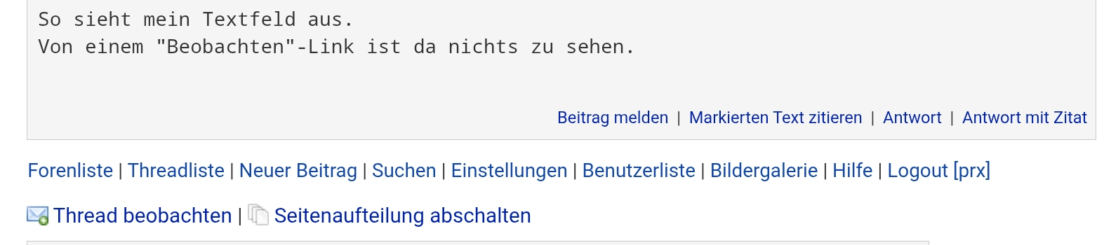 Sebastian R. schrieb: > Der hier? So sieht mein Textfeld aus. Von einem "Beobachten"-Link ist da nichts zu sehen.