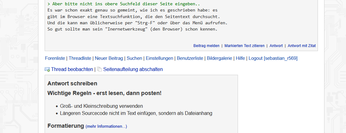 Ich hätte ja gerne noch einmal einen Screenshot vom Mikrohobby, wie dieser Bereich zwischen letztem Beitrag und dem Antworten-Bereich aussieht.
