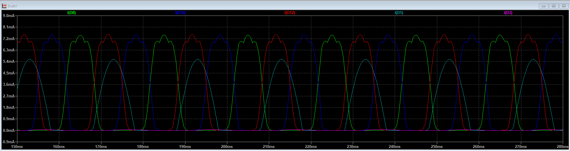 Hallo, ich habe die bekannte Drehfeld- und Phasenerkennungsschaltung nachgebaut. Sie funktioniert auch, nur habe ich folgende Probleme: 1. Soll die Phasenerkennung bei 200V triggern. Also unter 200V -> LED aus, über 200V -> LED an. Kann ich dafür lediglich die ZY180 gegen eine Z Diode mit 200V austauschen? 2. Sind alle LEDs viel zu dunkel. Ich muss gestehen, ich habe irgendwelche 5mm LEDs benutzt, von denen ich keine Werte weiß. Ich habe die 27k Widerstände mal durch 10,2k ersetzt. Laut LT Spice sollten sie dann knapp 20mA bekommen. Es ändert sich aber an der Helligkeit annähernd nichts. Bei den Richtungsanzeige LEDs weiß ich nicht, ob ich an den Werten bzw. an welchen Werten ich etwas ändern kann ohne die Funktionalität zu beeinträchtigen. Vileicht kann mir da ja jemand Tipps geben. Danke schoneinmal!