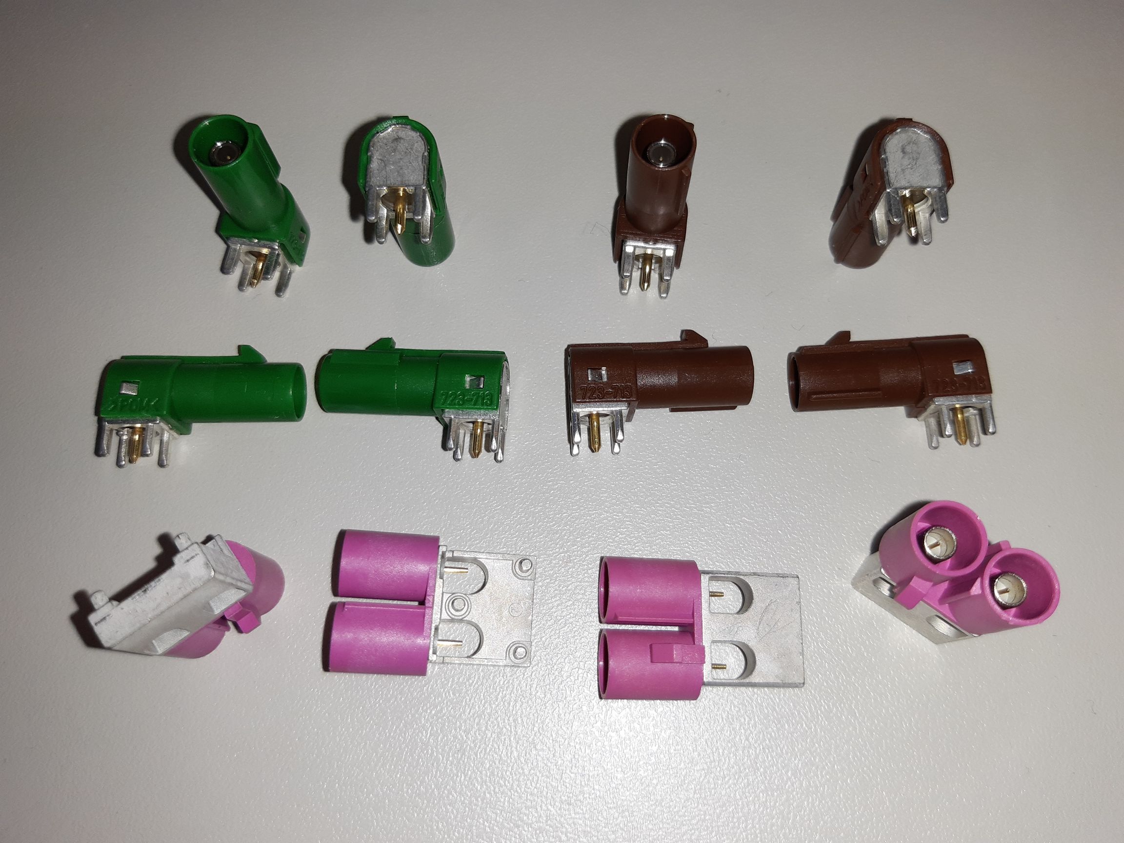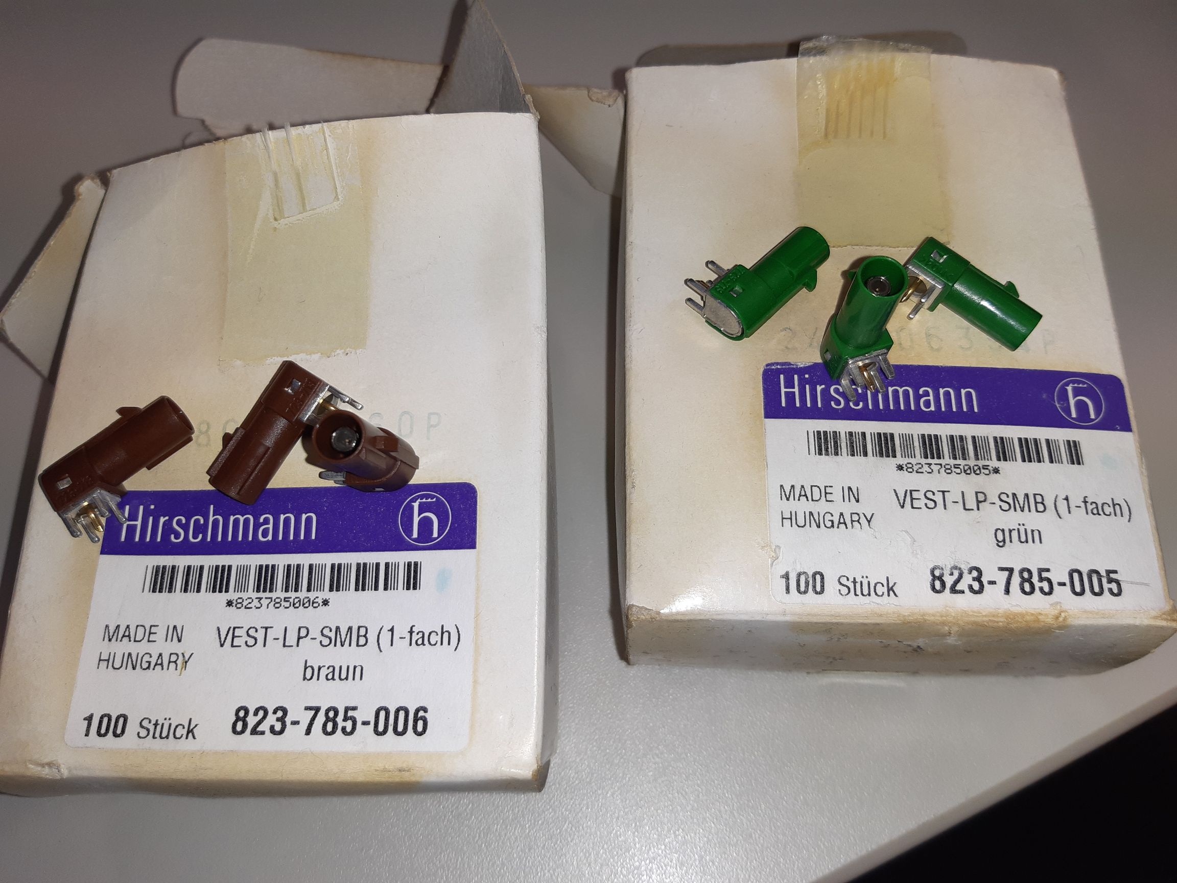 ca 59 Stück Hirschmann VEST-LP-SMB grün 823-785-005 ca 73 Stück Hirschmann VEST-LP-SMB braun 823-785-006 ca 22 Stück 2fach magenta, Hersteller unbekannt ca 19 Stück 2fach violett, Hersteller unbekannt Die Doppelbuchsen dürften auch von Hirschmann sein, es steht aber nichts drauf. Die Farbe entspricht der Position der Codiernasen. Wenn man die abknipst passen auch verschiedenfarbige Paare zusammen. Alles zusammen komplett EUR 30,- incl. Versand als Maxibrief innerhalb DE Anfragen bitte ausschließlich per pn, und die Mailadresse für die Rückantwort nicht vergessen! Wer Teilmengen will: --> pn