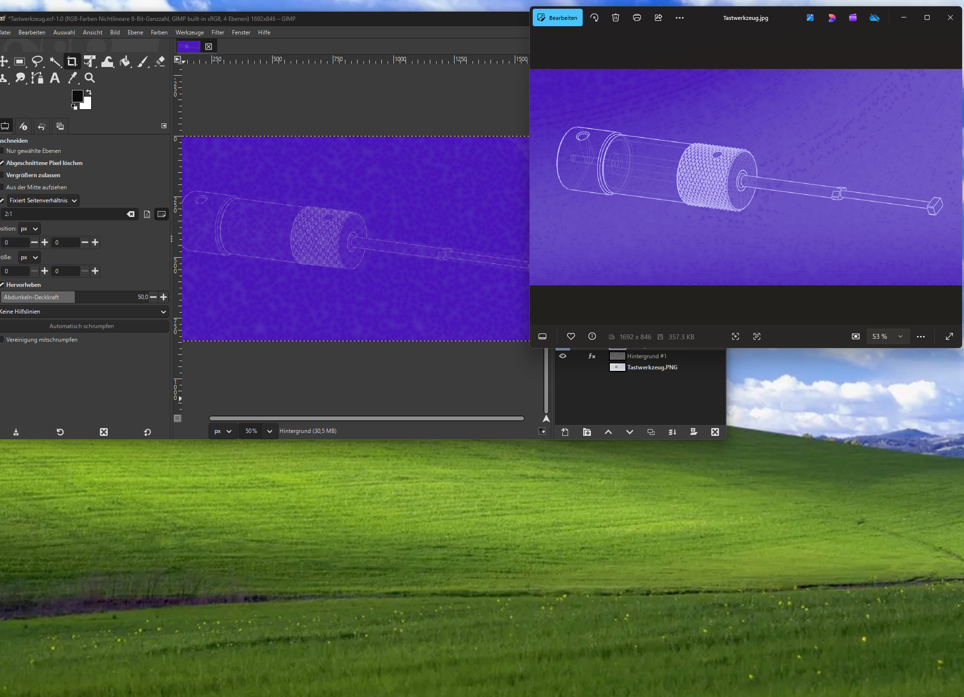 Jack V. schrieb: > Ja, wenn ich das xcf hernehme, sehe ich schon in der Ebenenvorschau das > Problem (3.0.8). Welches Betriebssystem? Kannst Du mal einen Screenshot machen? Ich hatte das Problem (das Vorschau und Export nicht zusammenpassten) letzte Woche schon einmal. Damals war die Bildquelle ein PNG, erzeugt aus einem PDF. Nur damals sah der Export besser als die Vorschau aus, deswegen habe ich es auf sich beruhen lassen. Edit: Im ersten Screenshot hatten Vorschau und Export nicht die gleiche Vergrößerung.