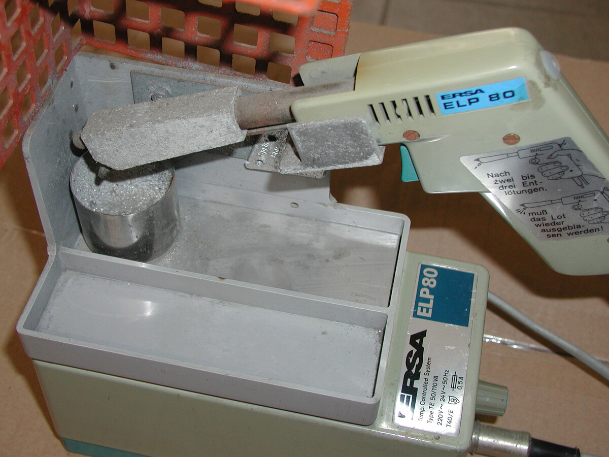 Verschenke ERSA ELP 80 Entlötkolben. Die Heizung funktioniert, Die Temperaturregelung scheinbar auch. Aufgrund des Alters ist der Beschenkte verantwortlich für die elektrische Sicherheit. Für die Vakuumerzeugung wird Druckluft benotigt. Die Verpackungs und Versandkosten betragen 12 Euro.