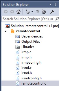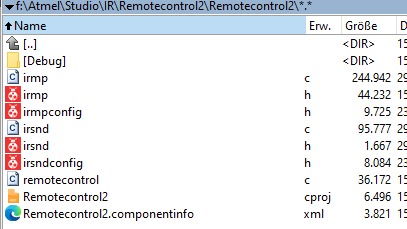 Hallo zusammen, ich kämpfe gerade mit der Portierung der lernfähigen Fernbedienung im Atmelstudio 7 https://www.mikrocontroller.net/articles/DIY_Lernf%C3%A4hige_Fernbedienung_mit_IRMP Das Projekt wurde im Atmelstudio 4 erstellt. Laut WEB lässt sich das Projekt importieren, das habe ich versucht und hab nur Fehler geerntet. Schritt 2, neues Projekt im Studio angelegt, die main.c umbenannt und den Source eingefügt. Die F_CPU in den Symbols definiert. Im Projekt-Explorer habe ich die Headerfiles hinzugefügt. Beim Erstellen hagelt es Fehler. "C:\Program Files (x86)\Atmel\Studio\7.0\toolchain\avr8\avr8-gnu-toolchain\bin\avr-gcc.exe " -o remotecontrol.elf remotecontrol.o -Wl,-Map="remotecontrol.map" -Wl,--start-group -Wl,-lm -Wl,--end-group -Wl,--gc-sections -mmcu=atmega168 -B "C:\Program Files (x86)\Atmel\Studio\7.0\Packs\Atmel\ATmega_DFP\1.6.364\gcc\dev\atmega168" F:\Atmel\Studio\IR\remotecontrol\remotecontrol\Debug\Makefile(106,1): error: recipe for target 'remotecontrol.elf' failed remotecontrol.o: In function `__vector_11': F:\Atmel\Studio\IR\remotecontrol\remotecontrol\remotecontrol.c(656,1): error: undefined reference to `irsnd_ISR' F:\Atmel\Studio\IR\remotecontrol\remotecontrol\remotecontrol.c(656,1): error: undefined reference to `irmp_ISR' remotecontrol.o: In function `send_key': F:\Atmel\Studio\IR\remotecontrol\remotecontrol\remotecontrol.c(703,1): error: undefined reference to `irsnd_send_data' F:\Atmel\Studio\IR\remotecontrol\remotecontrol\remotecontrol.c(705,1): error: undefined reference to `irsnd_is_busy' remotecontrol.o: In function `main': F:\Atmel\Studio\IR\remotecontrol\remotecontrol\remotecontrol.c(736,1): error: undefined reference to `irmp_init' F:\Atmel\Studio\IR\remotecontrol\remotecontrol\remotecontrol.c(737,1): error: undefined reference to `irsnd_init' F:\Atmel\Studio\IR\remotecontrol\remotecontrol\remotecontrol.c(738,1): error: undefined reference to `irsnd_set_callback_ptr' F:\Atmel\Studio\IR\remotecontrol\remotecontrol\remotecontrol.c(796,1): error: undefined reference to `irmp_get_data' F:\Atmel\Studio\IR\remotecontrol\remotecontrol\remotecontrol.c(808,1): error: undefined reference to `irmp_get_data' F:\Atmel\Studio\IR\remotecontrol\remotecontrol\remotecontrol.c(849,1): error: undefined reference to `irmp_get_data' Nach stundenlanger Suche und Nachfragen bei anderen... Kann mir einer hier helfen? Ich hab die Fehler auch nur in diesem Projekt, andere Projekte laufen tadellos. Grüße Klaus